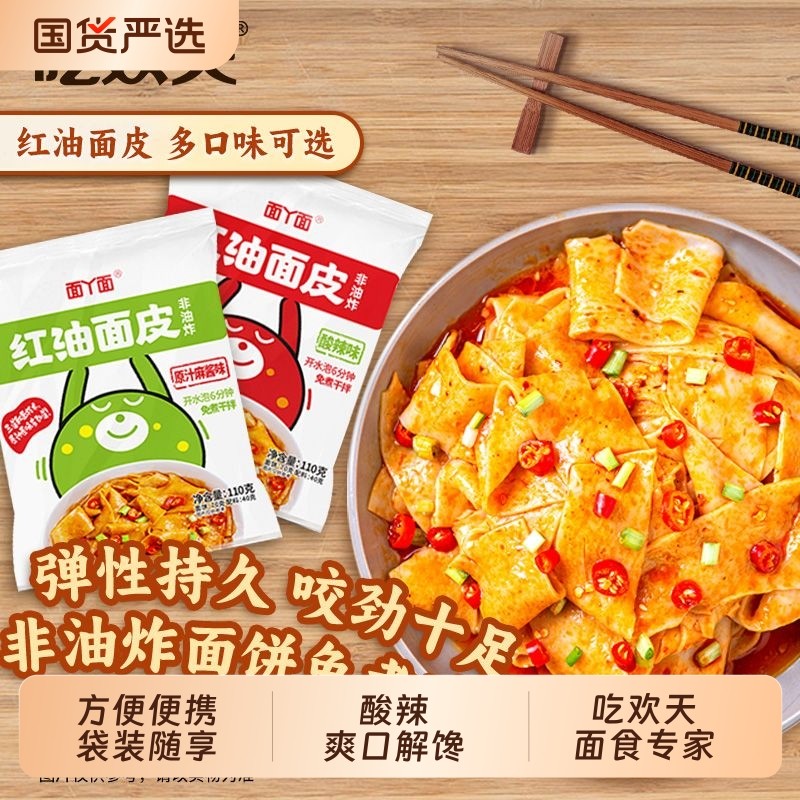 吃欢天红油面皮凉皮擀面皮宽方便面泡面面粉干拌面速食麻酱袋装