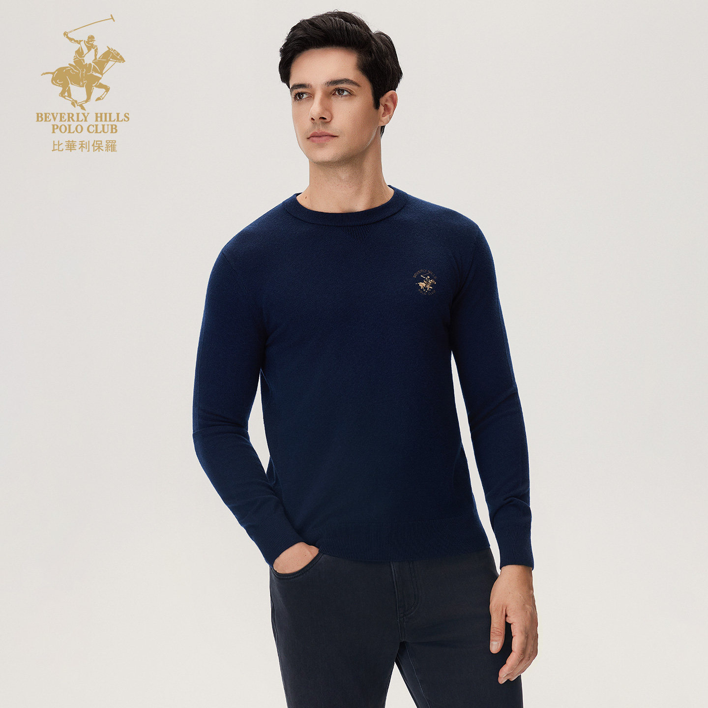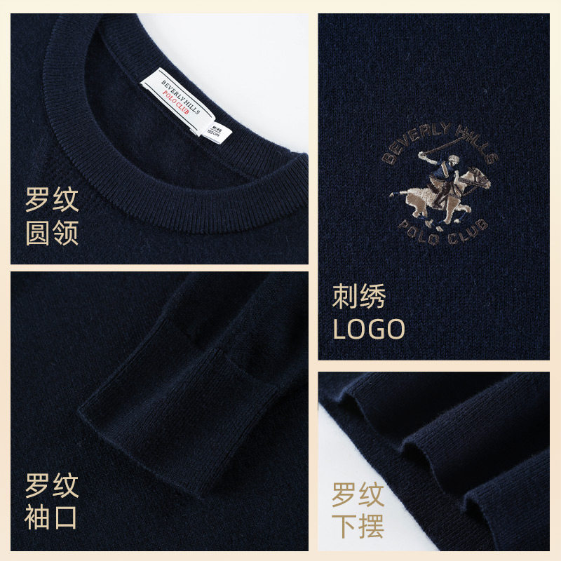 【100%绵羊毛】比华利保罗秋冬新款男士毛衣圆领保暖针织羊毛衫