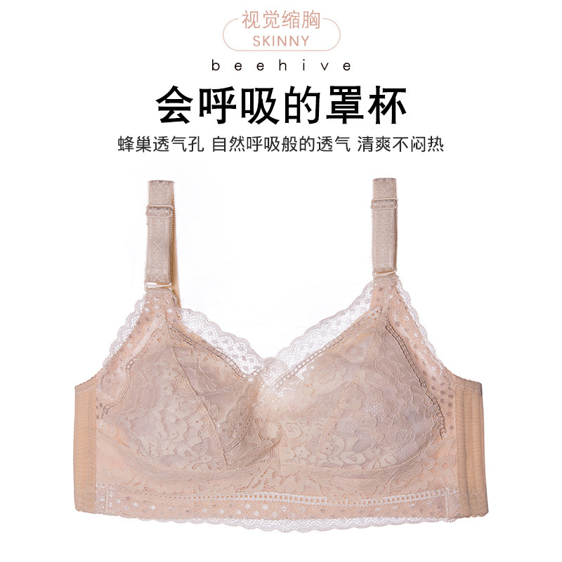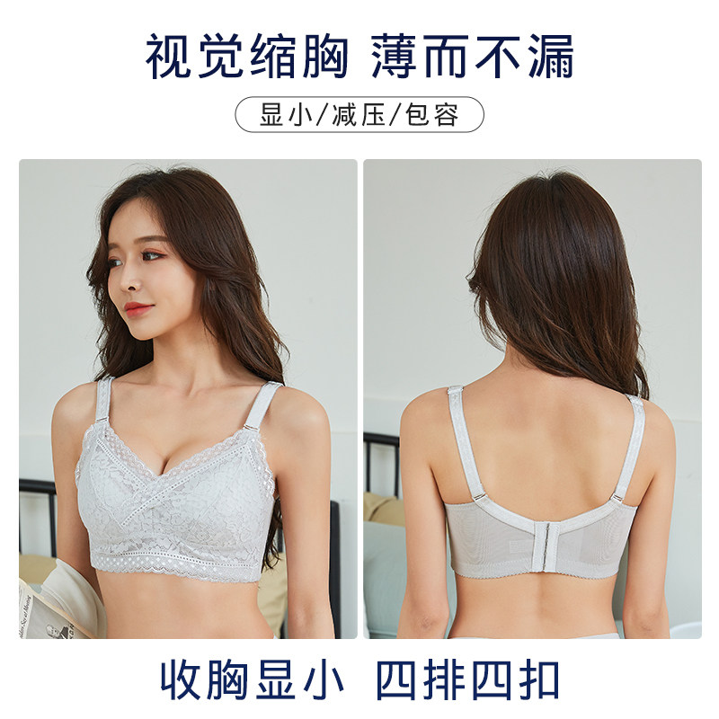 内衣女无钢圈大胸显小文胸罩大码聚拢调整型收副乳防下垂夏超薄款