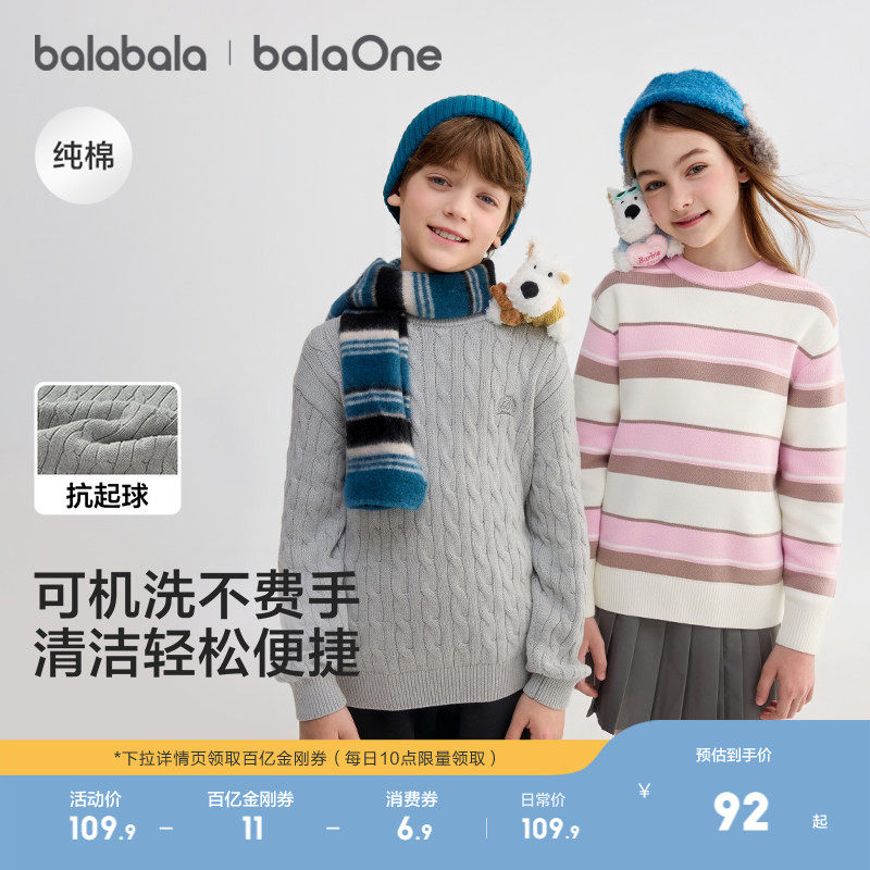 巴拉巴拉童装儿童毛衣男女童2025冬新款针织衫亲子装潮流舒适百搭