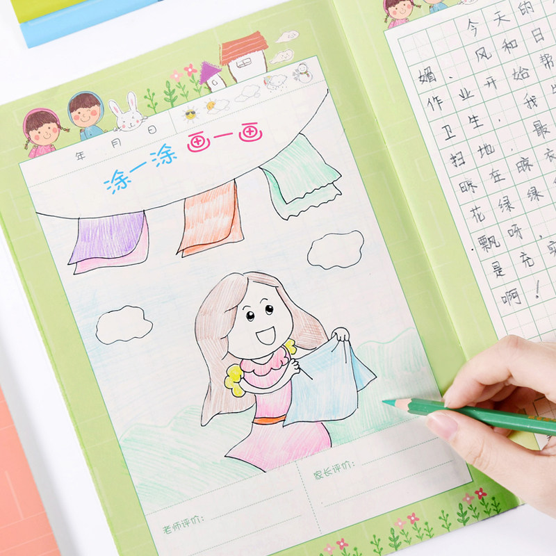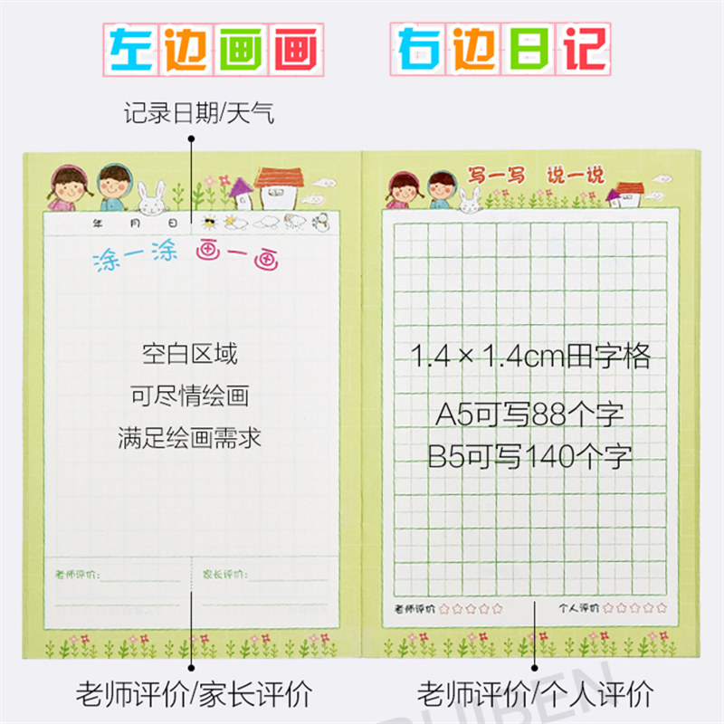 绘画日记本小学生卡通田字格写话图画本儿童作业本少儿周记画画本一二年级可爱写画日记本大号图画本4本包邮