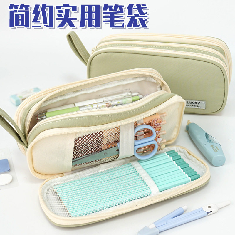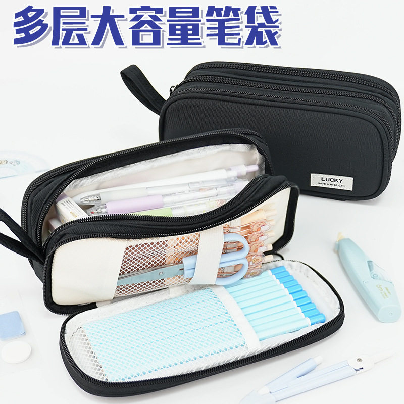 新款跨境笔袋简约大容量文具盒高颜值初中生多层收纳分类文具袋