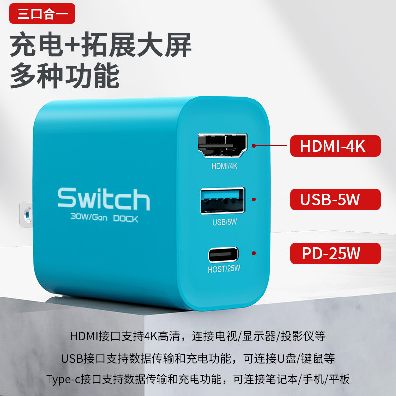 适用于Switch便携底座氮化镓Gan充电器任天堂OLED游戏主机连接电视NS拓展坞配件扩展网线接口HDMI投屏转换器