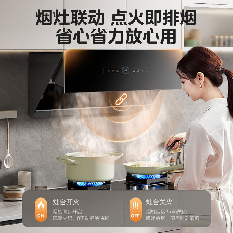 美的抽油烟机家用厨房侧吸式25大吸力挥手自动清洗官方旗舰店烟机