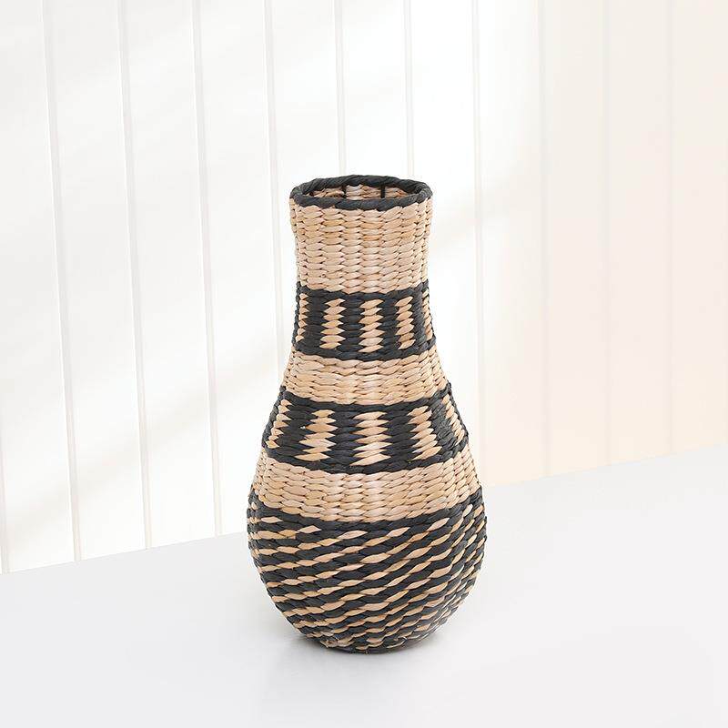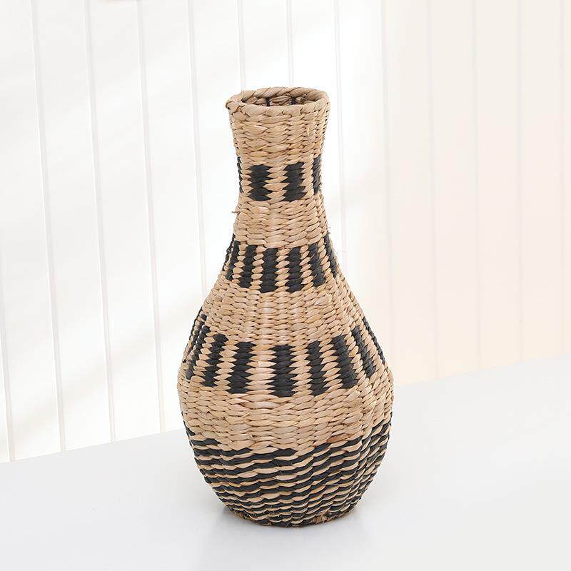 厂家手工草编花瓶家居桌面复古装饰小口花瓶仿真摆件编织插干花篮