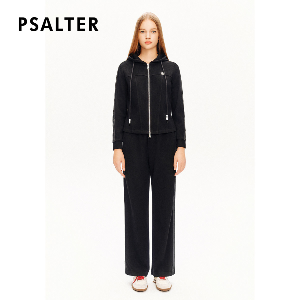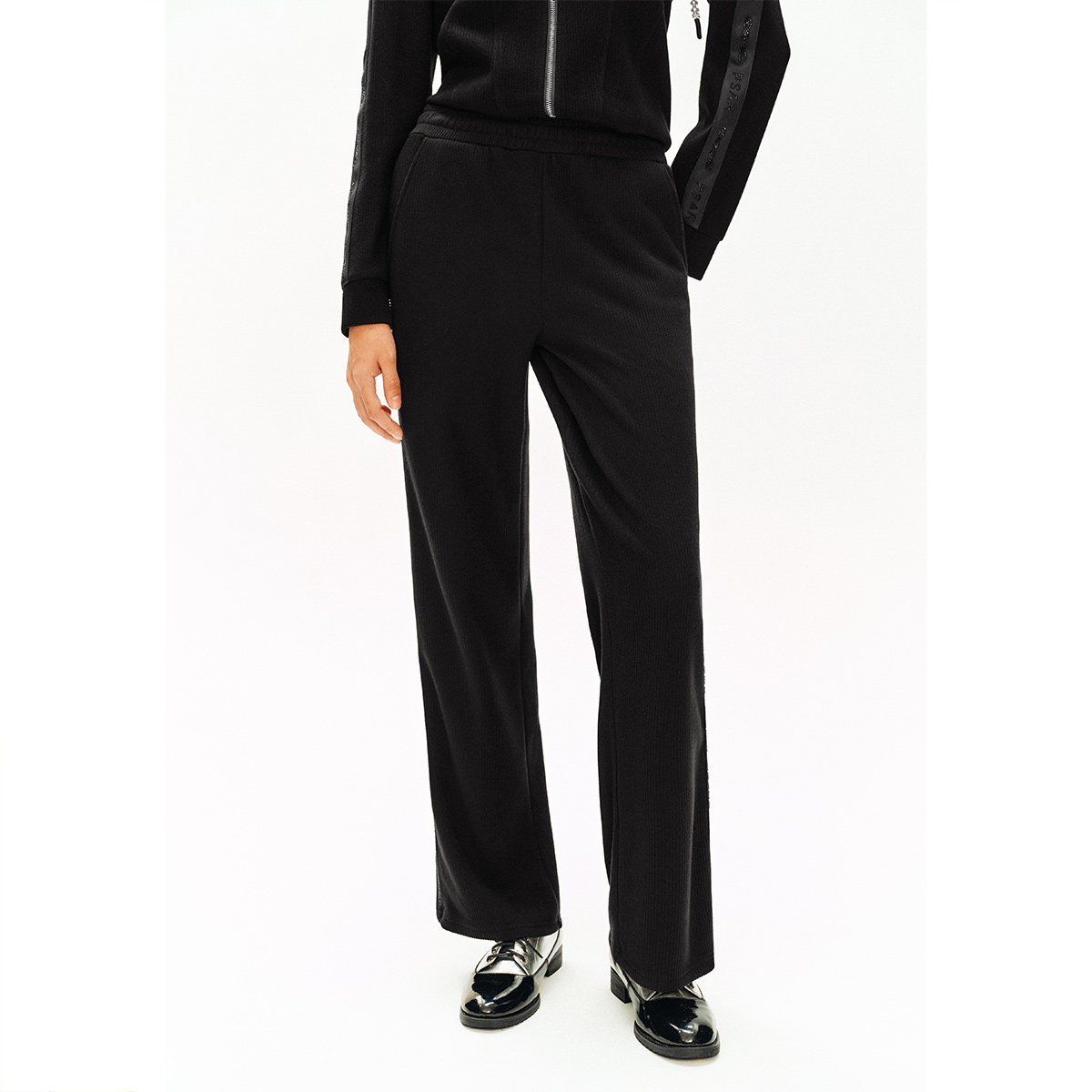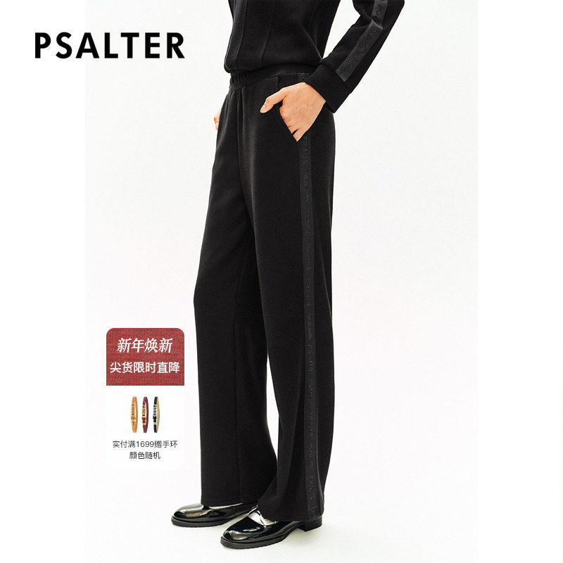 诗篇专选松紧腰条纹烫钻弹力针织直筒运动裤休闲裤秋款
