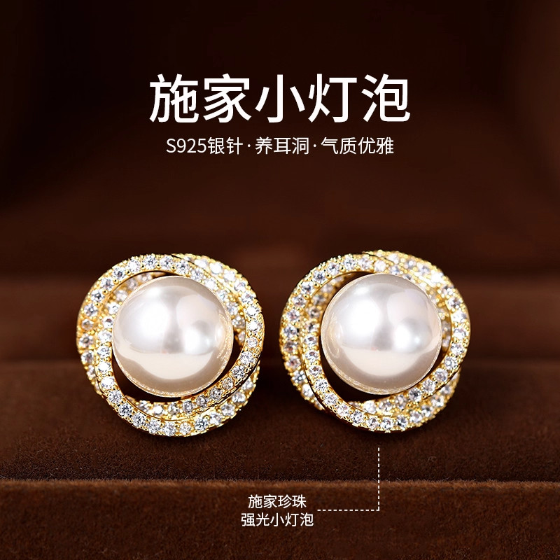施家珍珠耳钉轻奢高级感女养耳洞耳环2025年新款爆款气质时尚耳饰
