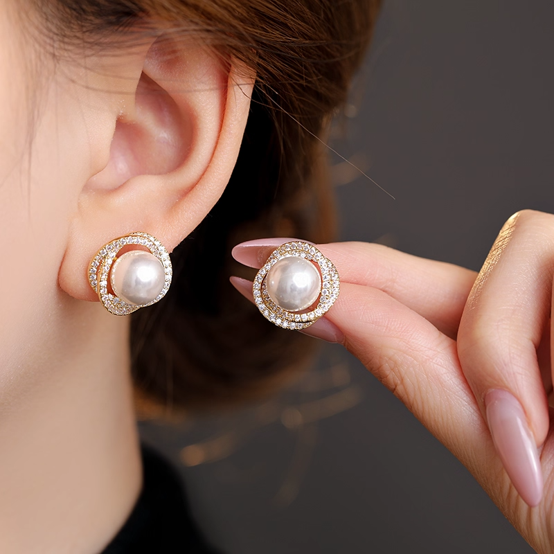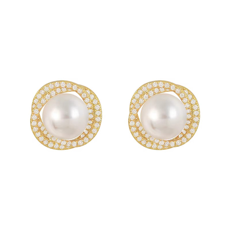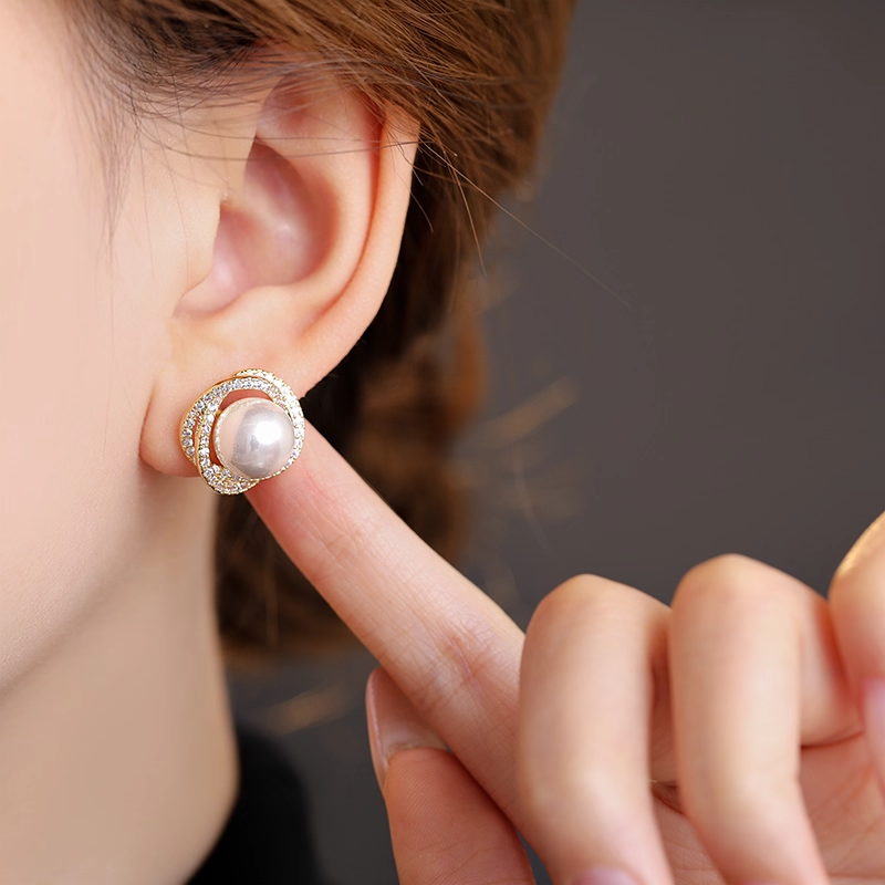 色珍珠耳钉女款2025新款爆款高级感气质大气耳环轻奢秋冬耳饰螺旋