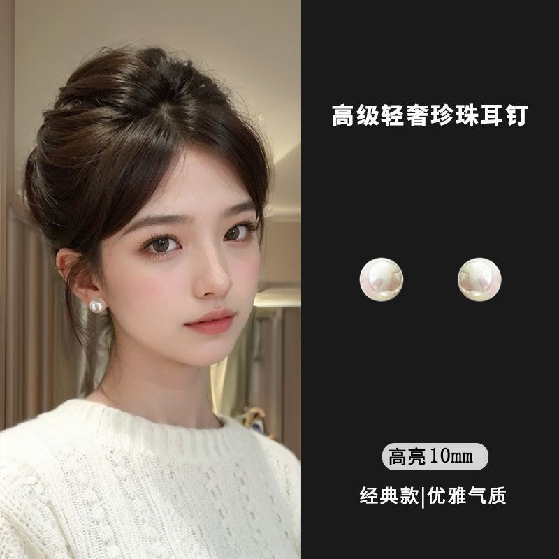 施家珍珠耳钉轻奢高级感女养耳洞耳环2025年新款爆款气质时尚耳饰