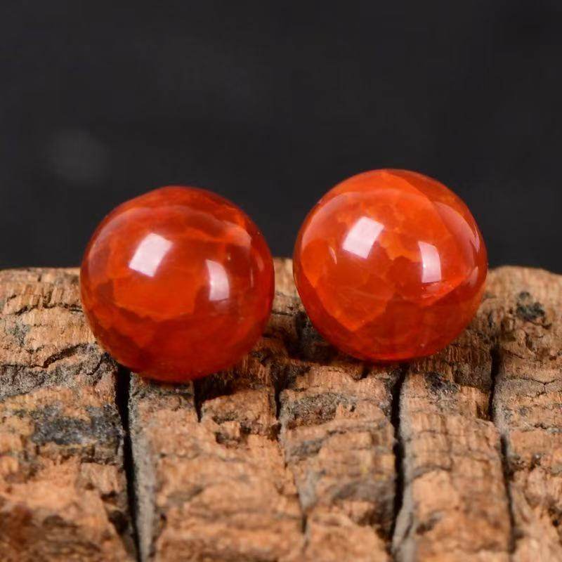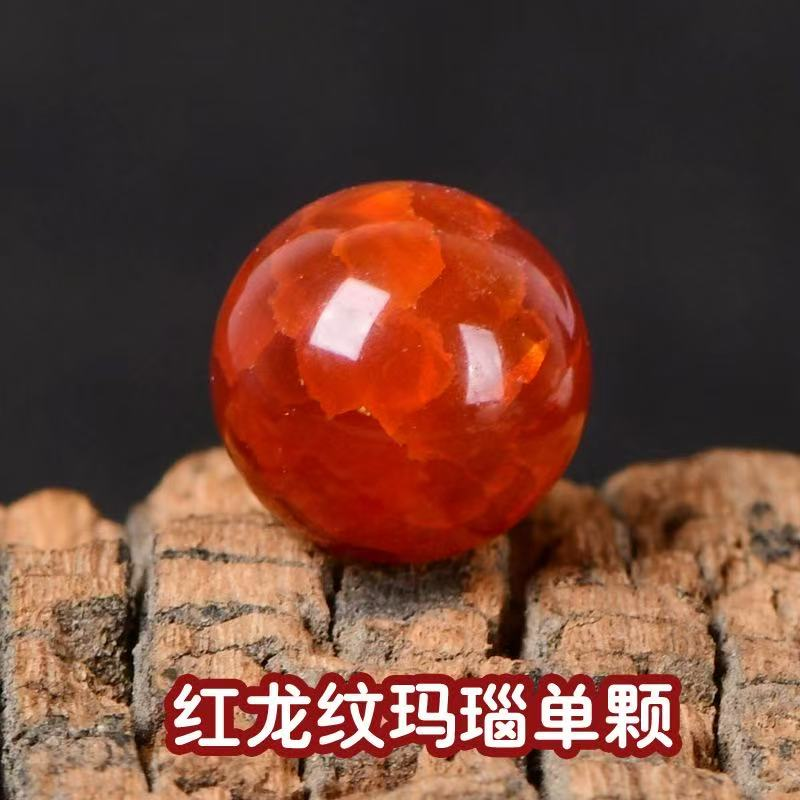 冰花龙纹南红玛瑙散珠隔珠diy配饰水晶手工串配珠圆珠单颗烤色珠