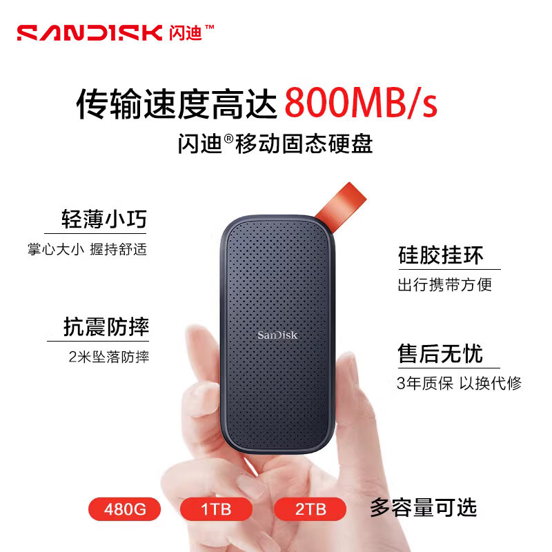 闪迪E30移动硬盘固态1T加密2T手机电脑外接ssd高速480g兼容mac