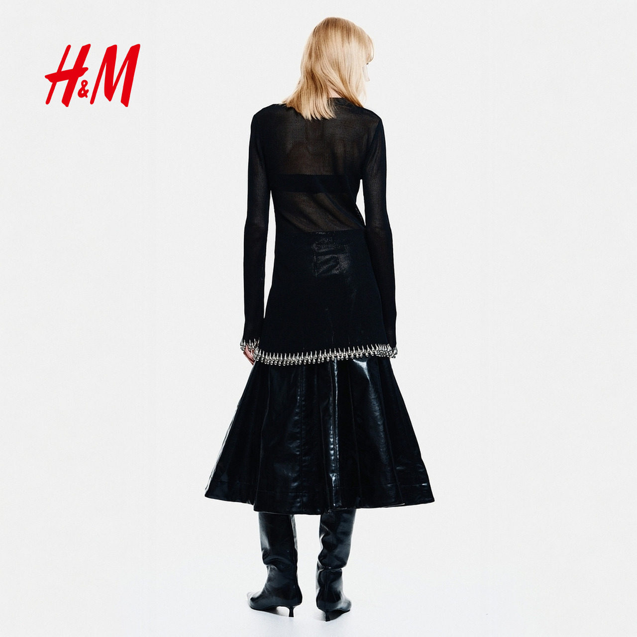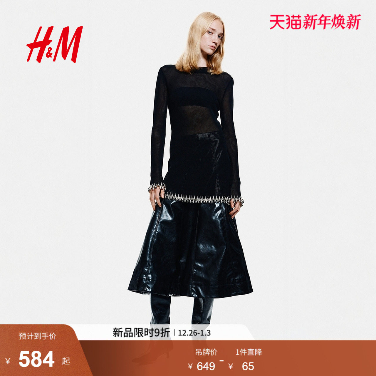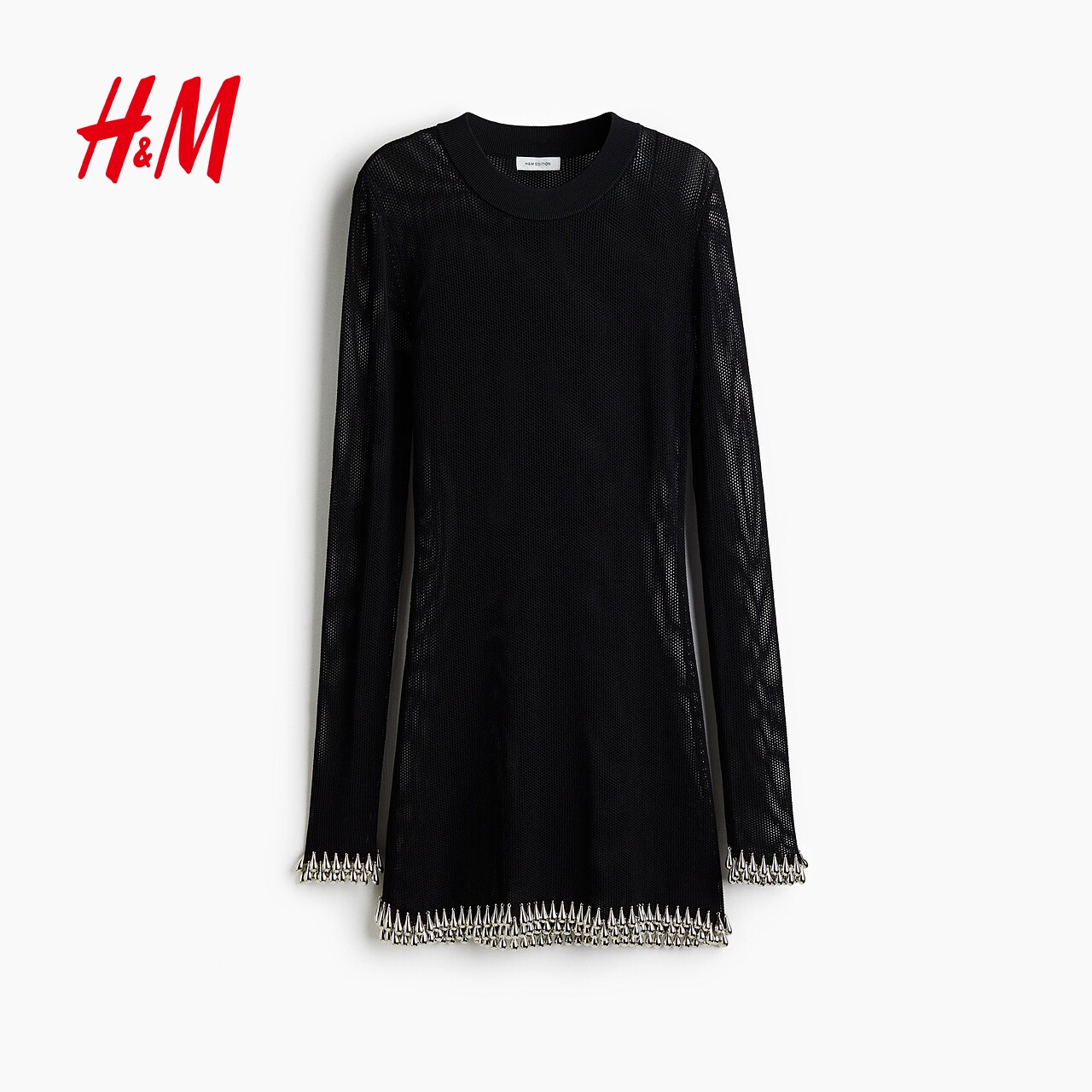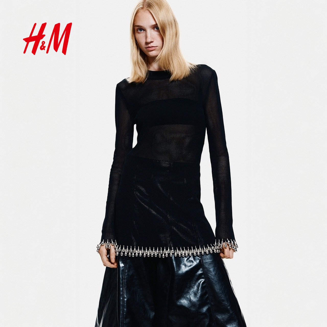 HM25冬季新款时尚女装T恤珠饰渔网上衣1310240