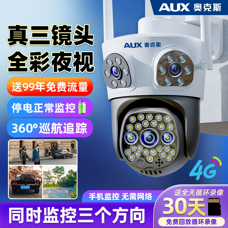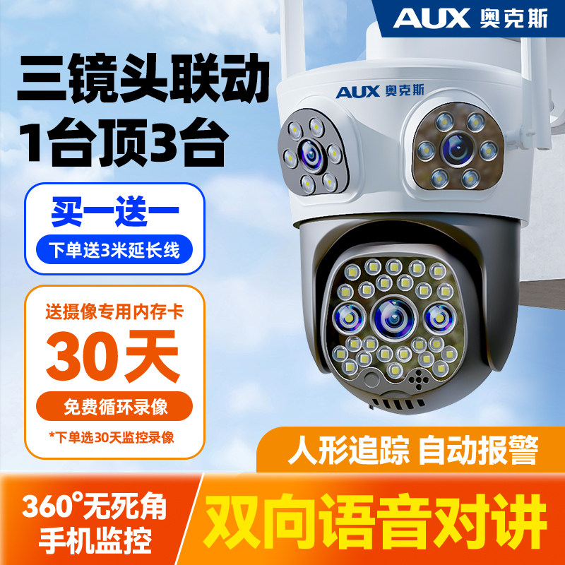 奥克斯摄像头监控器360度无死角室外家用手机远程无需网络摄影头