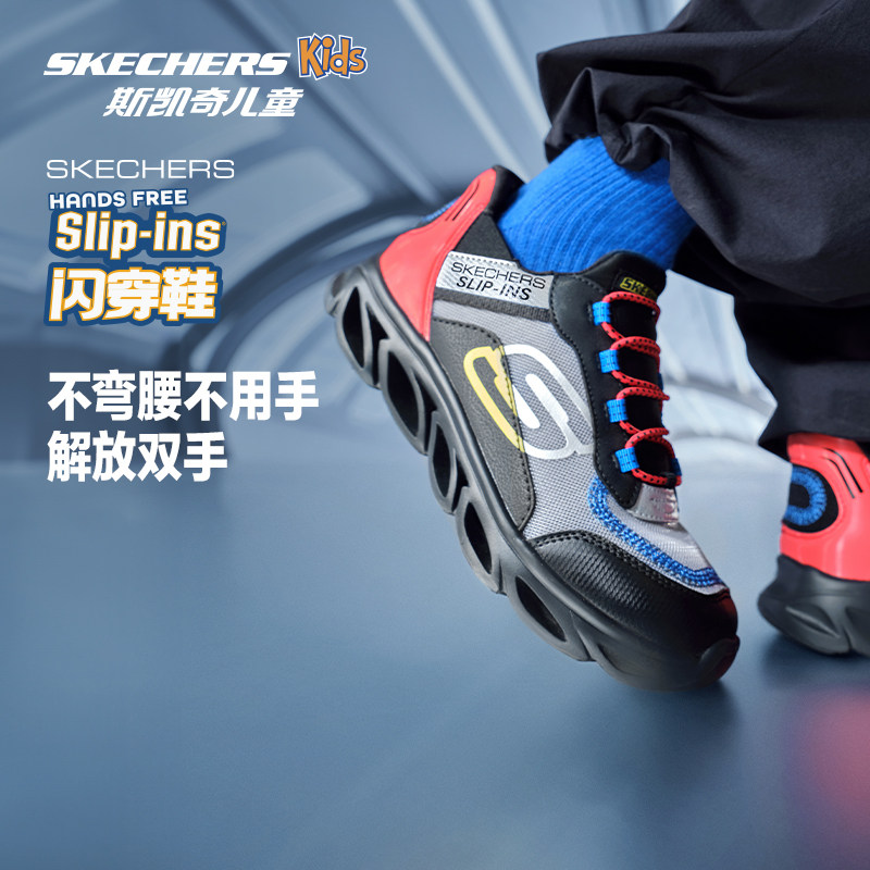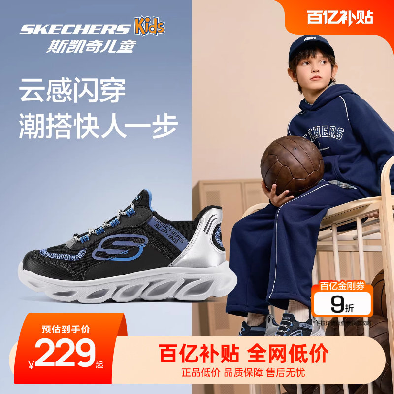 Skechers斯凯奇儿童云感闪穿鞋春季一脚蹬男女童防滑减震运动鞋