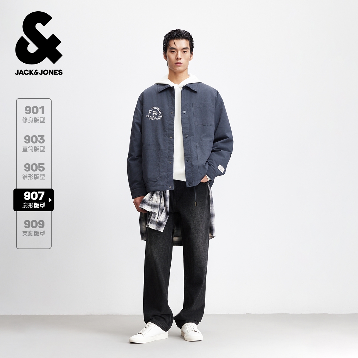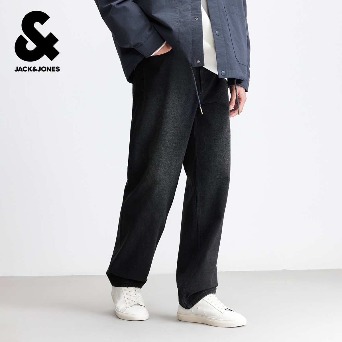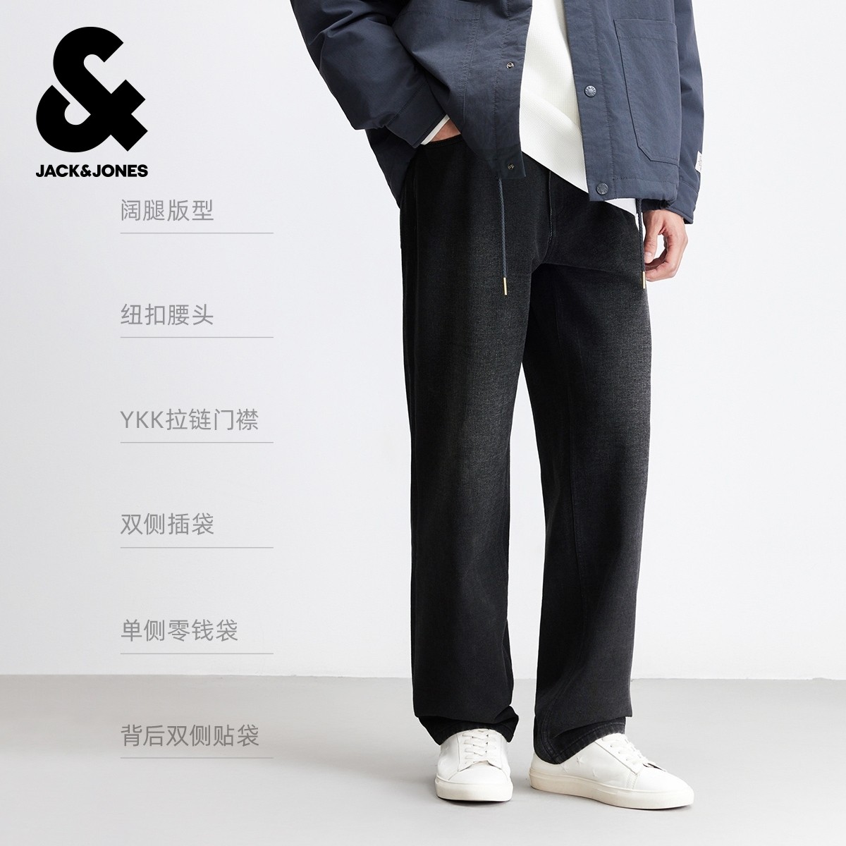 杰克琼斯秋冬季男装牛仔裤长裤子阔腿时尚百搭休闲男款水洗猫须