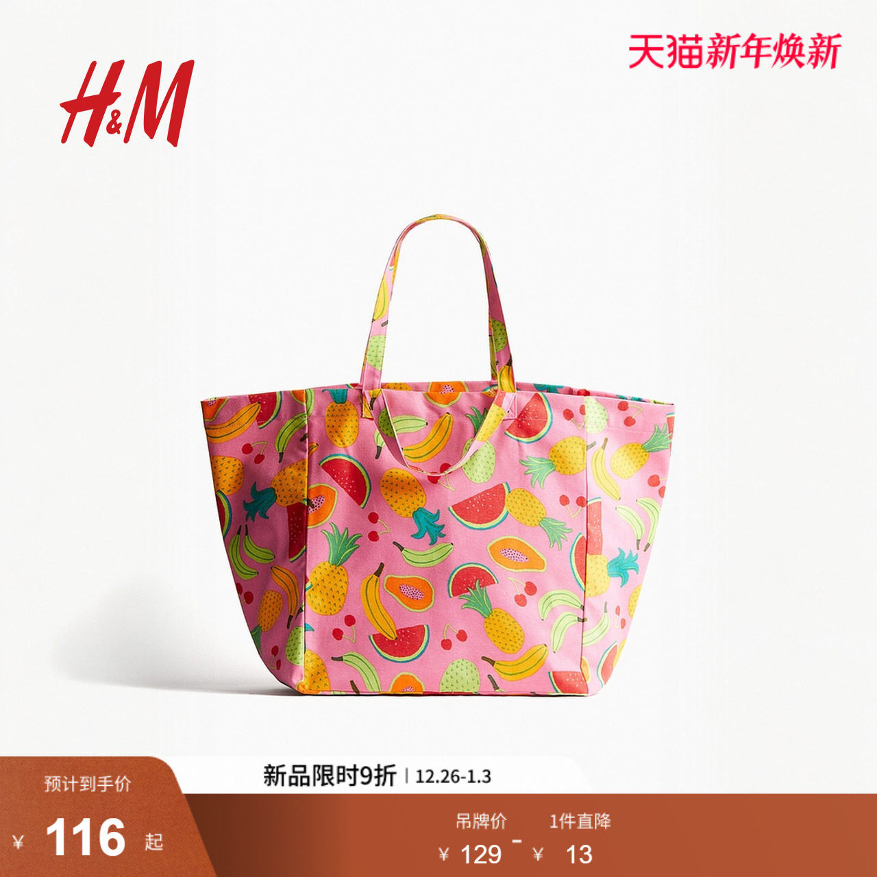 HM女士包袋2025新款帆布包大容量手提包印花女款沙滩包1134173