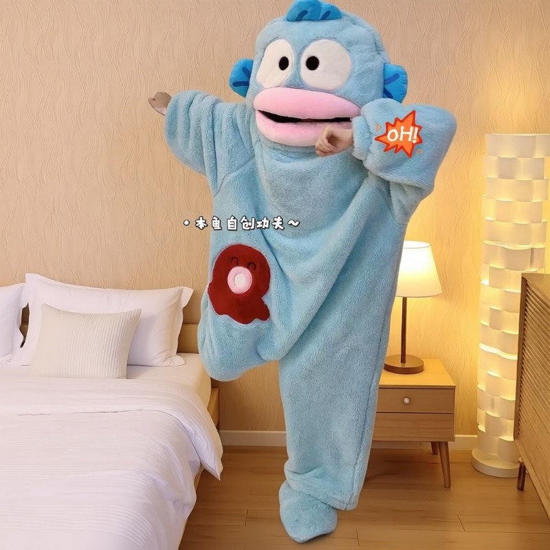 小丑鱼连体睡衣女珊瑚绒加厚保暖睡袋冬季大嘴鱼搞怪睡袍男加大码