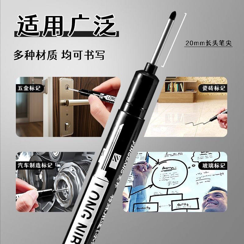 长头记号笔可加墨油性防水防油不掉色加长深孔瓷砖木工标记专用笔