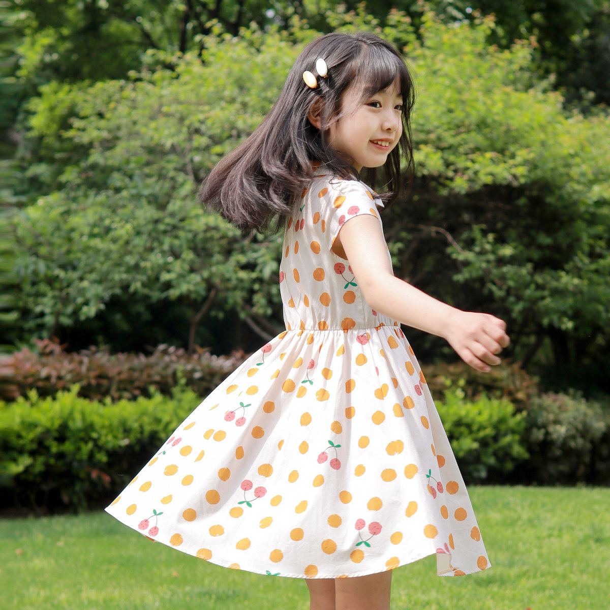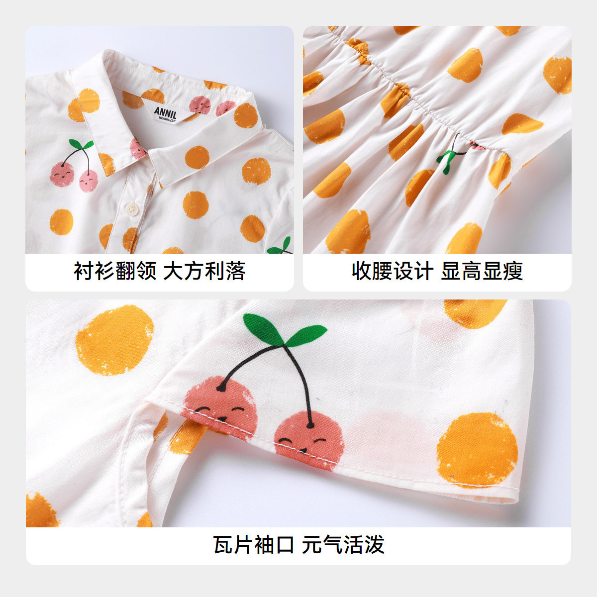 安奈儿童装女童短袖连衣裙夏新款休闲纯棉甜美清新收腰碎花裙子