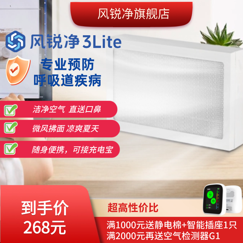 风锐净3pro空气净化器CRBOX桌面便携去除病毒防雾霾