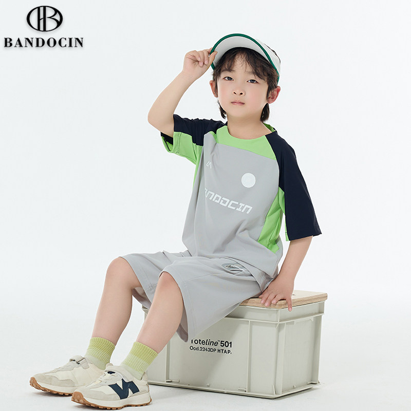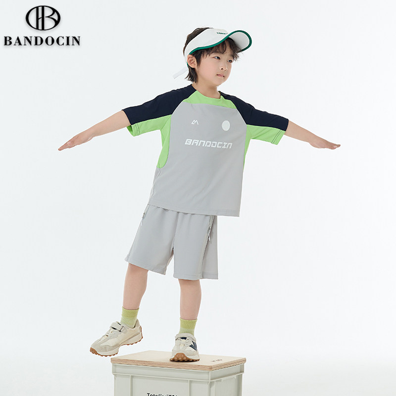 亲子男童运动速干套装夏装洋气薄款2025新款儿童夏季休闲两件套潮
