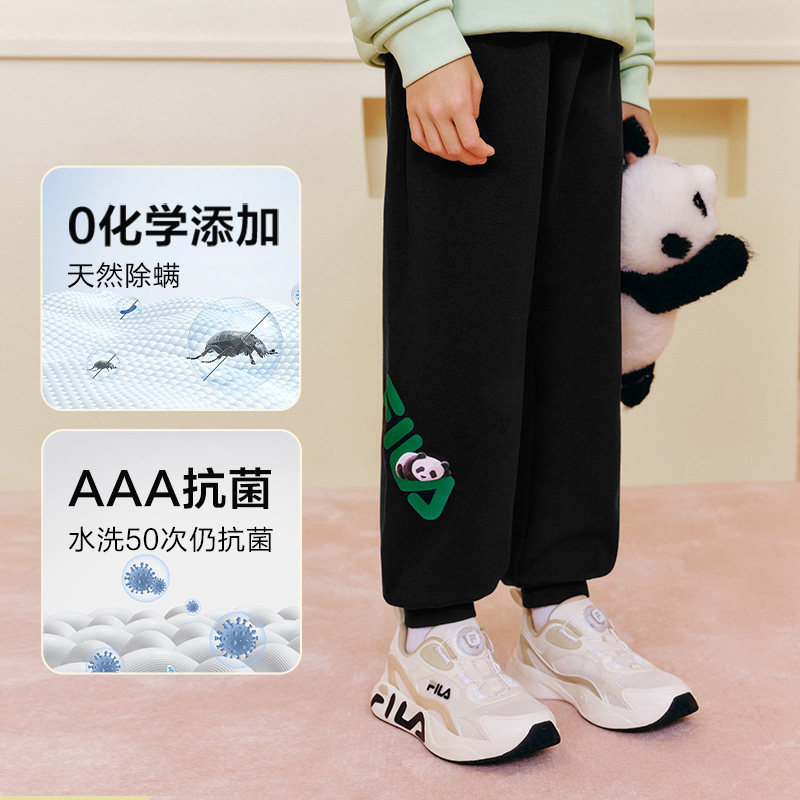 FILA斐乐儿童熊猫工厂联名长裤2025秋季新款男女童运动裤春秋款
