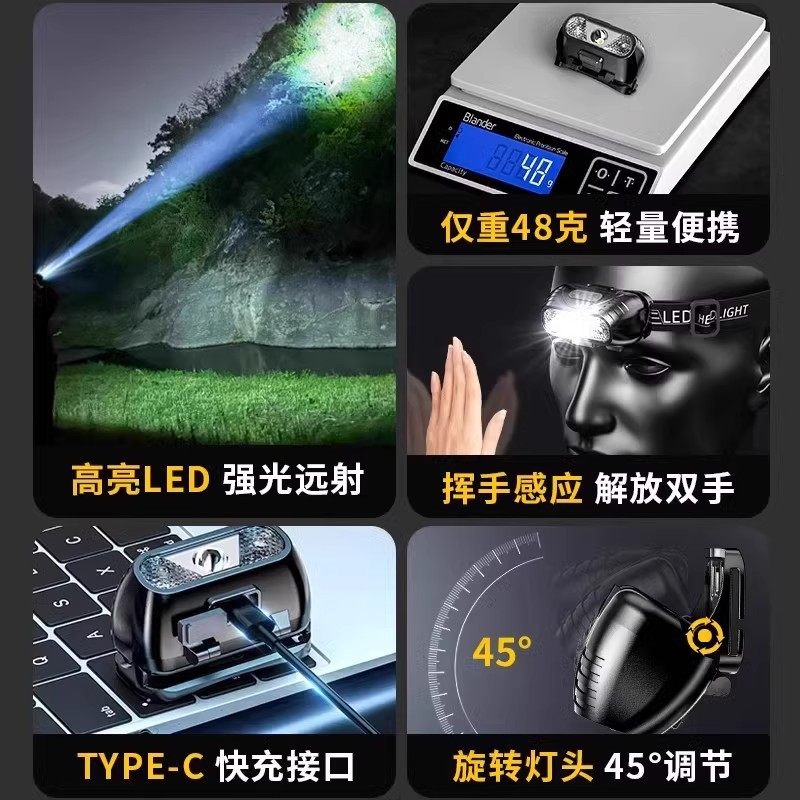 头灯强光充电超亮头戴式照明感应超长续航户外夜钓鱼专用led新款