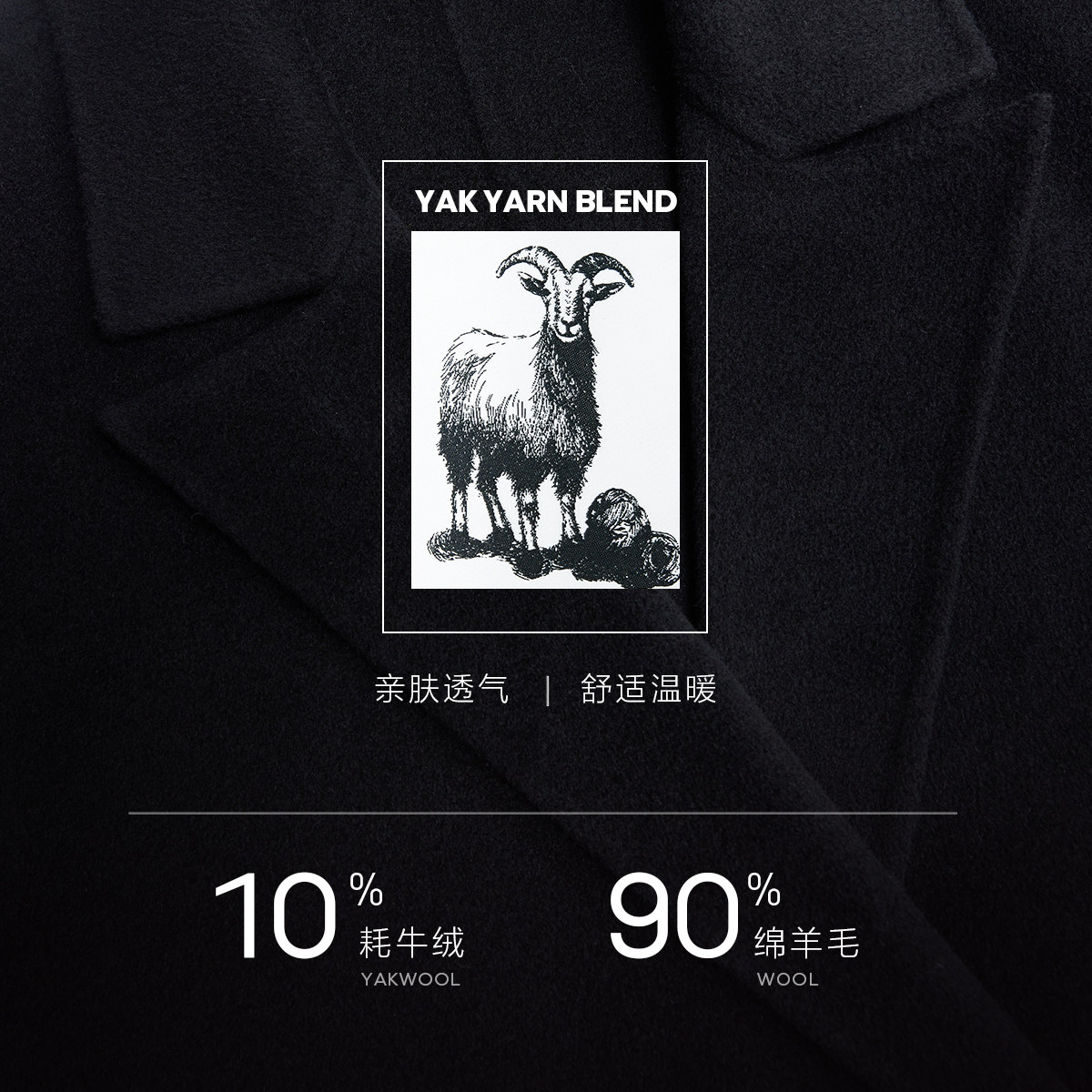 【直播专属】海上公路鲨鱼纹戗驳领毛呢大衣男士高级感长款外套