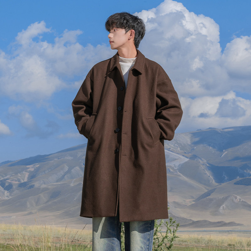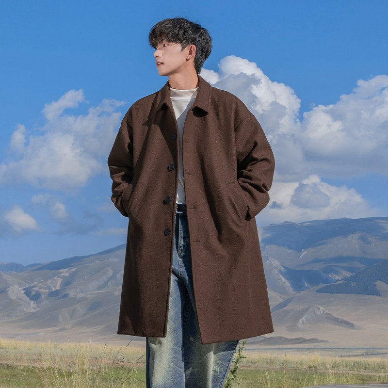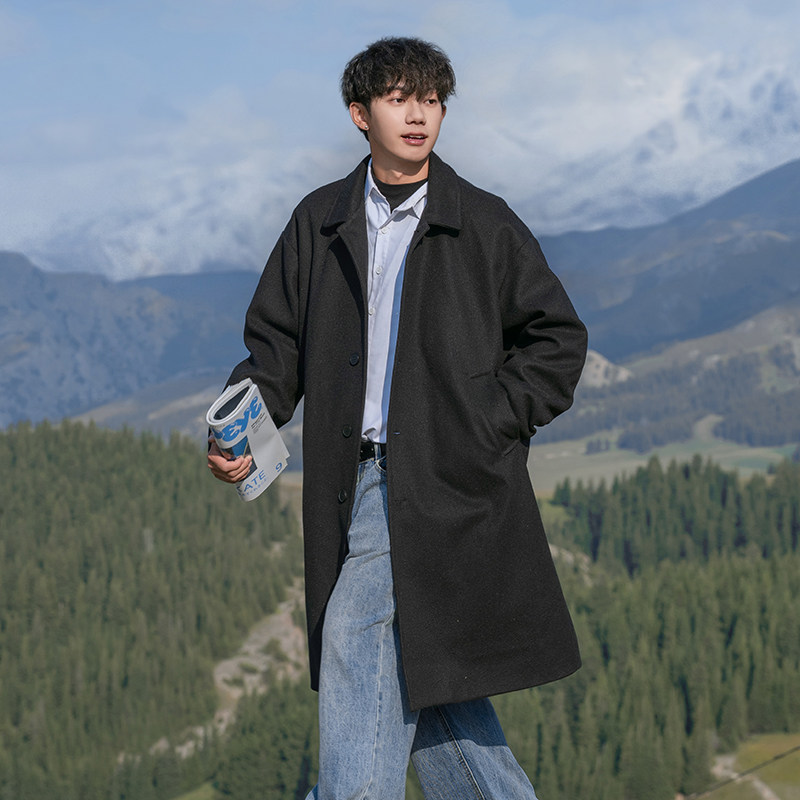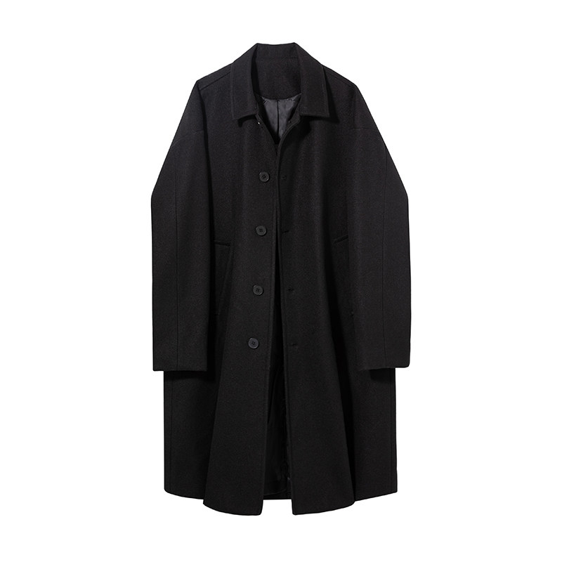 【直播专属】海上公路鲨鱼纹戗驳领毛呢大衣男士高级感长款外套