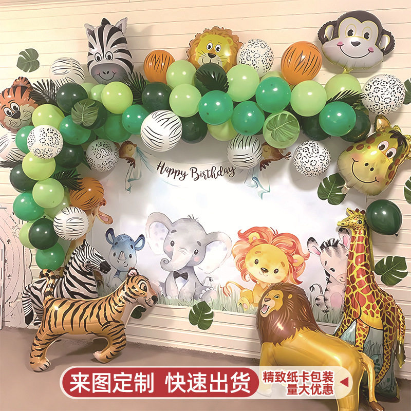 森系宝宝周岁生日场景布置装饰满月礼百天宴男女手绘动物kt板定制