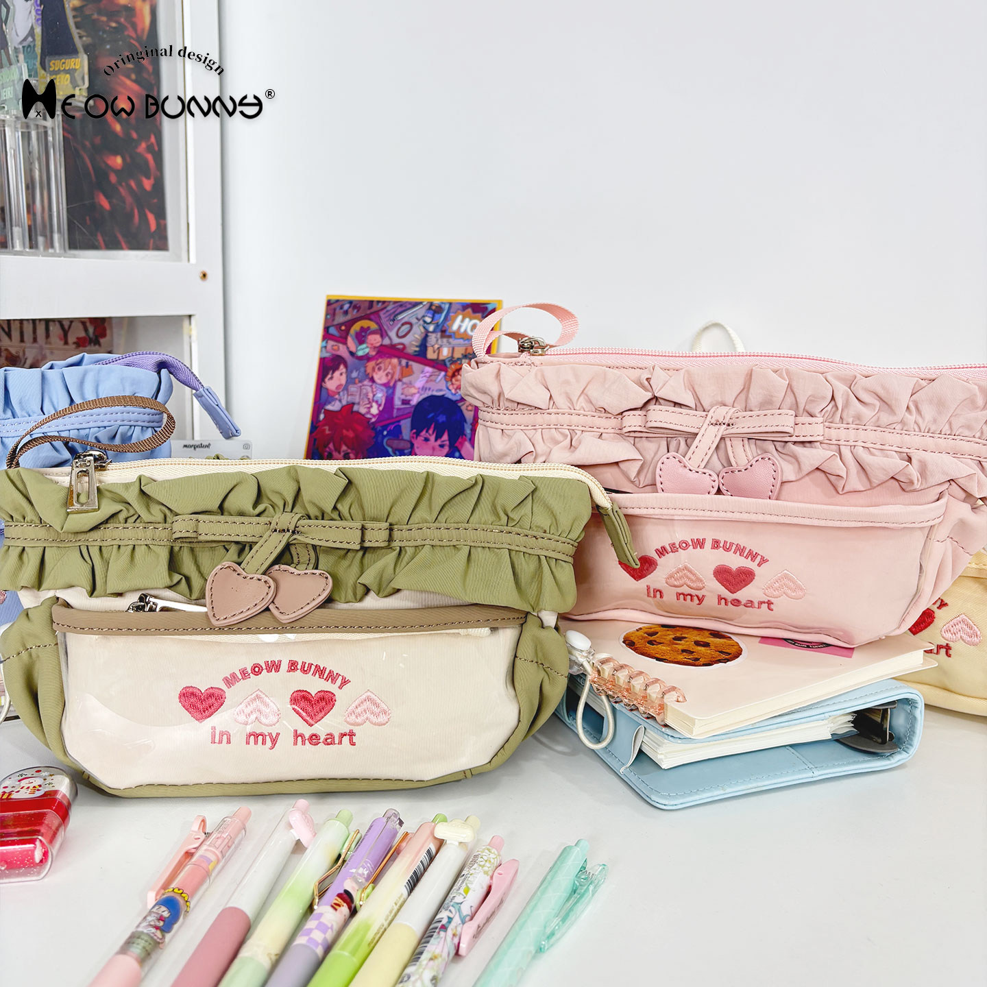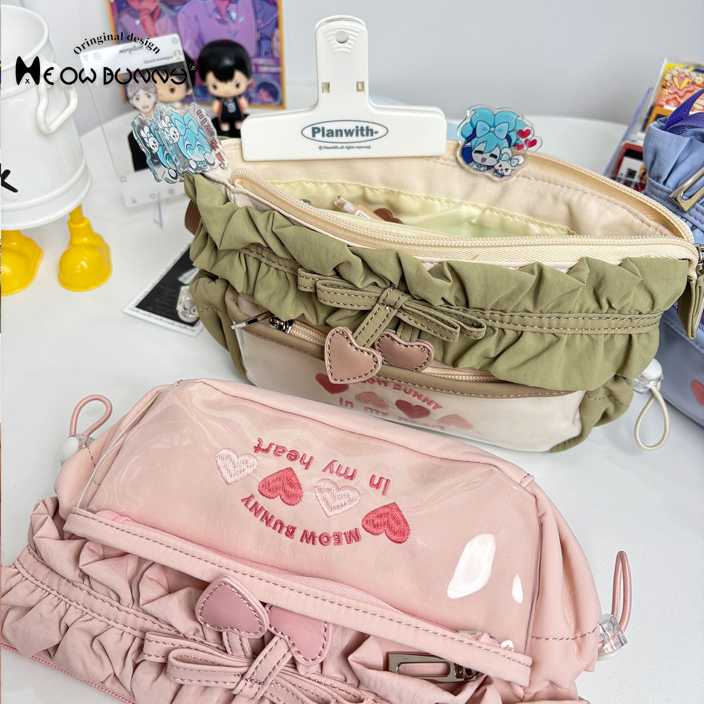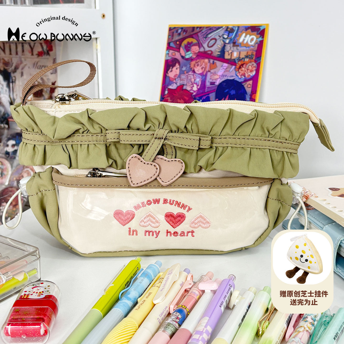 meowbunny甜心痛 笔袋高颜值ins风痛包透明可放小卡爱心刺绣笔袋大容量学生文具收纳袋2025新款可爱手拿包