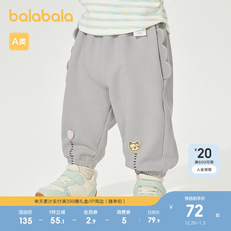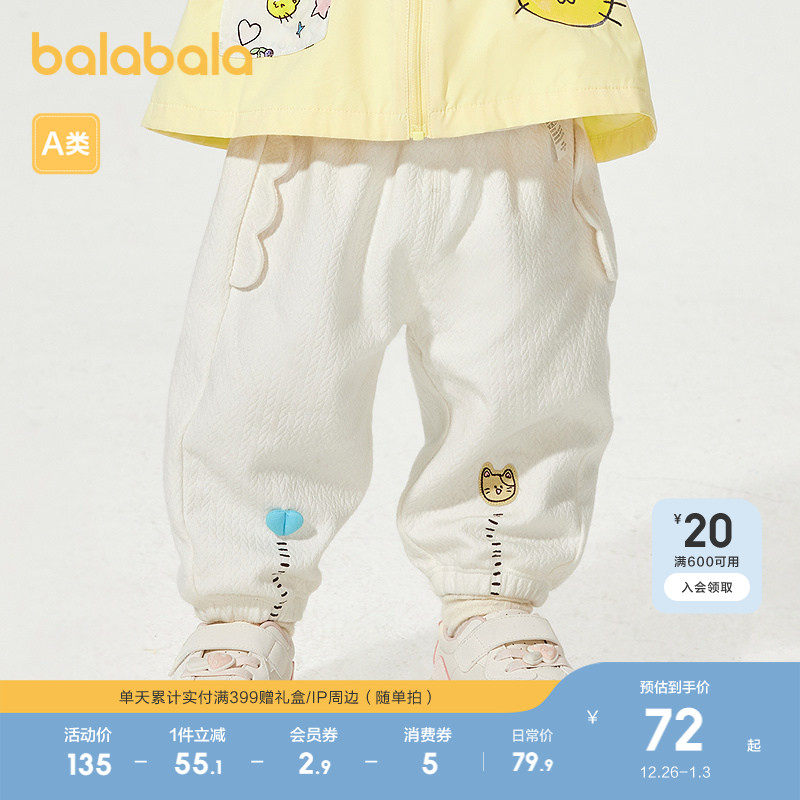 巴拉巴拉童装女童男童长裤2025新款春秋装宝宝休闲裤子小童刺绣萌