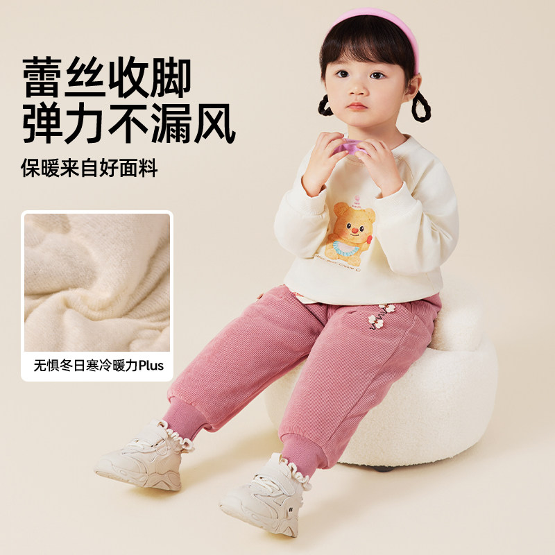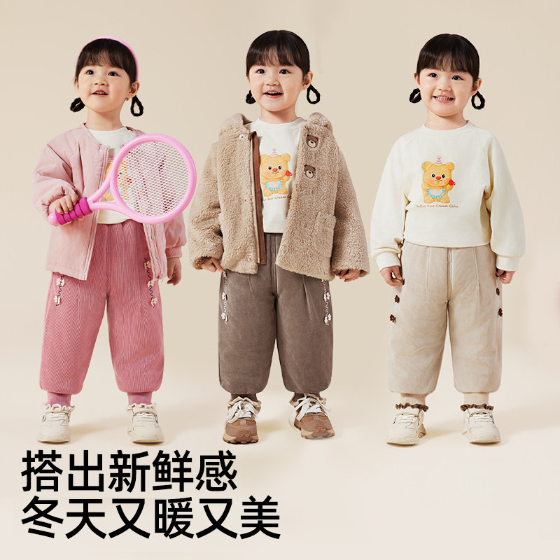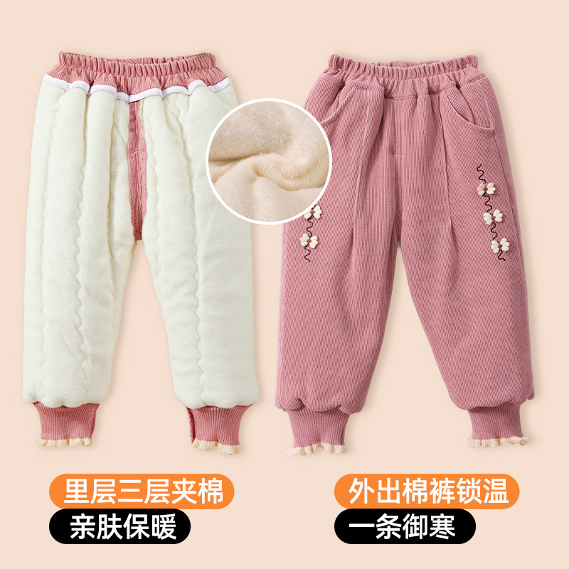 婧麒女童棉裤加厚秋冬洋气时髦童装宝宝外穿保暖长裤儿童加绒裤子