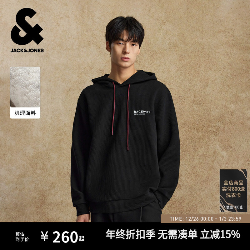 【肌理面料】杰克琼斯男装25年秋季新款宽松连帽卫衣外套字母刺绣