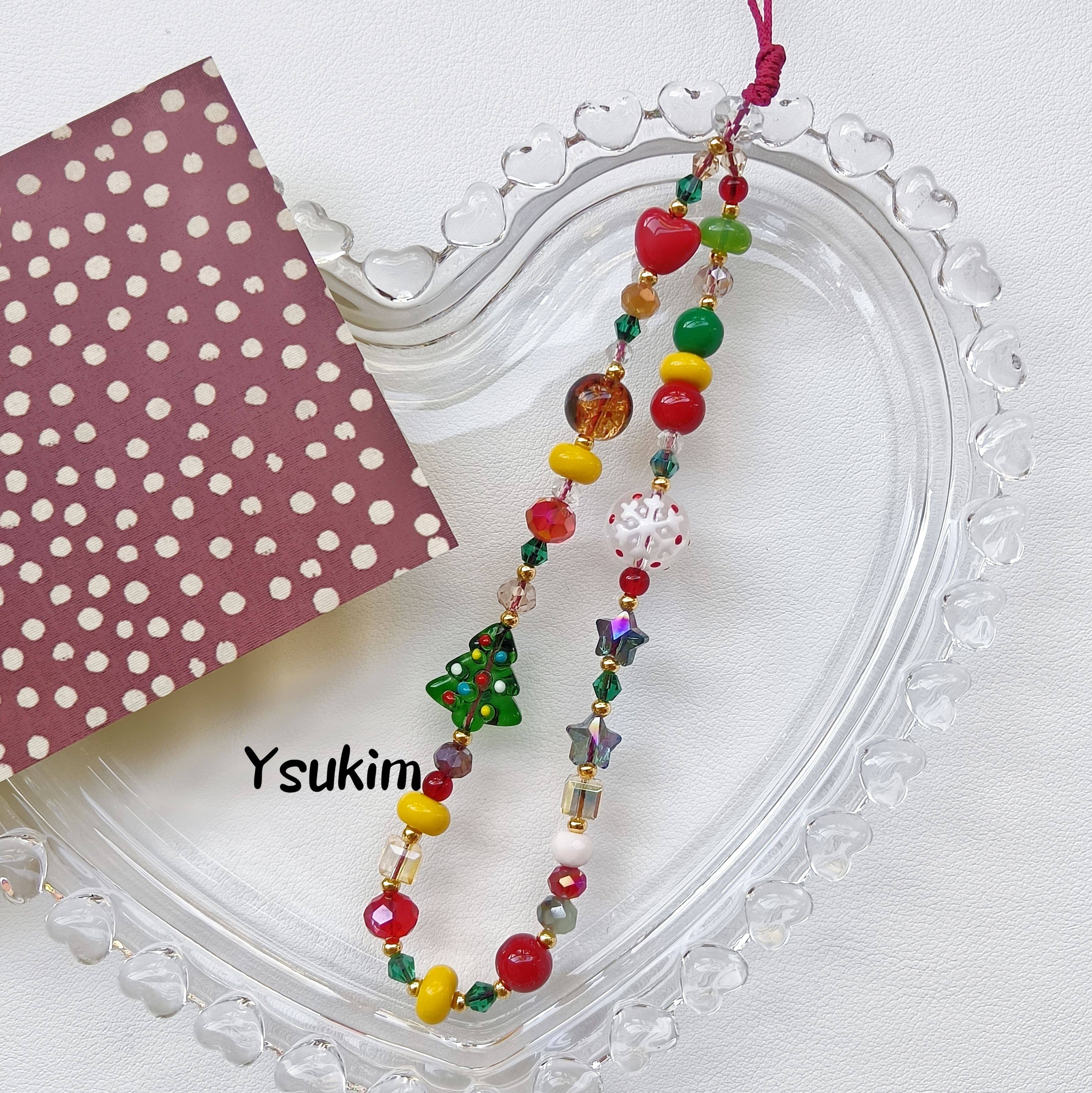 【月夏】原创韩国ins圣诞星彩色串珠手机挂绳少女心挂链ccd挂饰