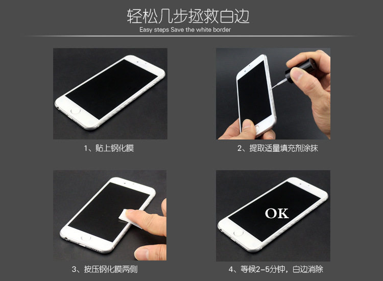 白边填充液手机贴膜修复液去白边油消除液贴膜工具神器非固化钢化膜填充剂消除气泡修补液屏幕固态白边修复液