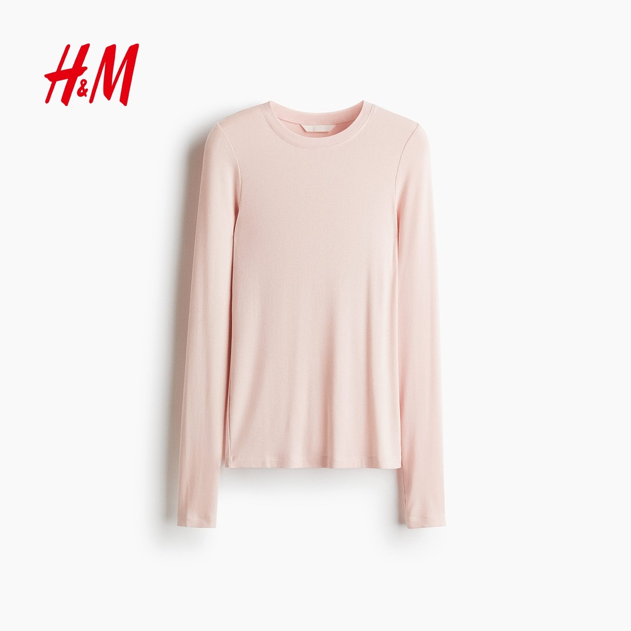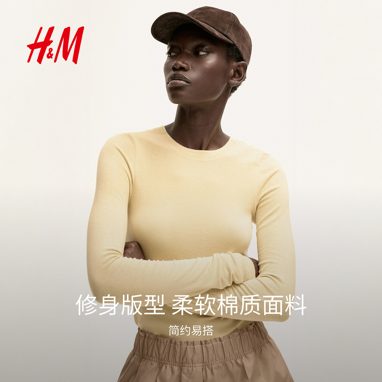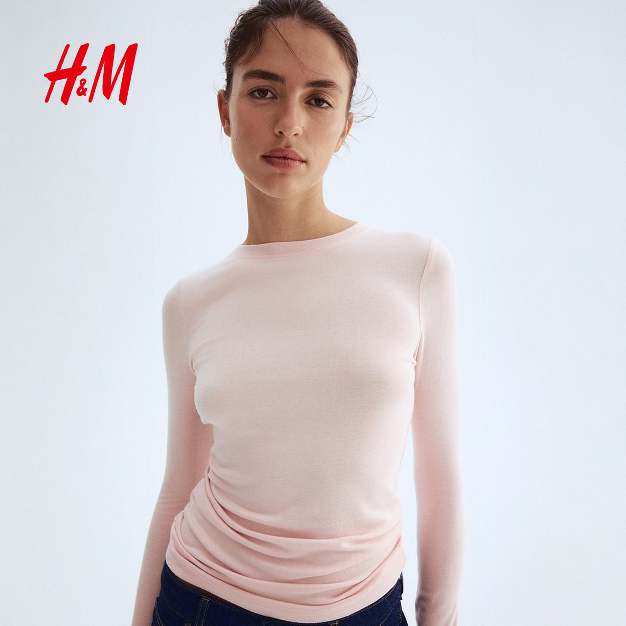 HM女装T恤2025冬季新款时尚休闲圆领长袖打底衫内搭上衣1311988