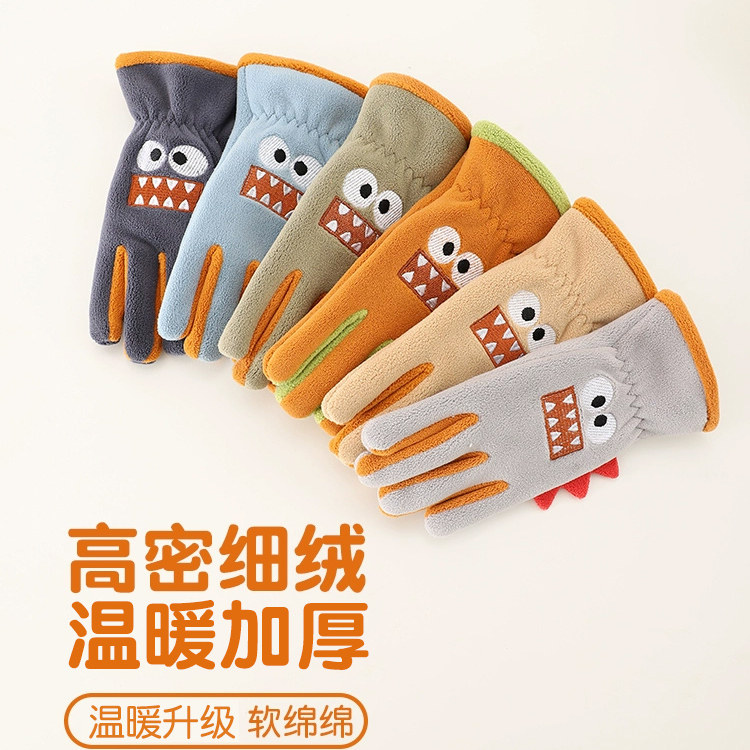 南极人儿童保暖手套秋冬季户外骑车骑行大童男女孩防寒加绒卡通Z