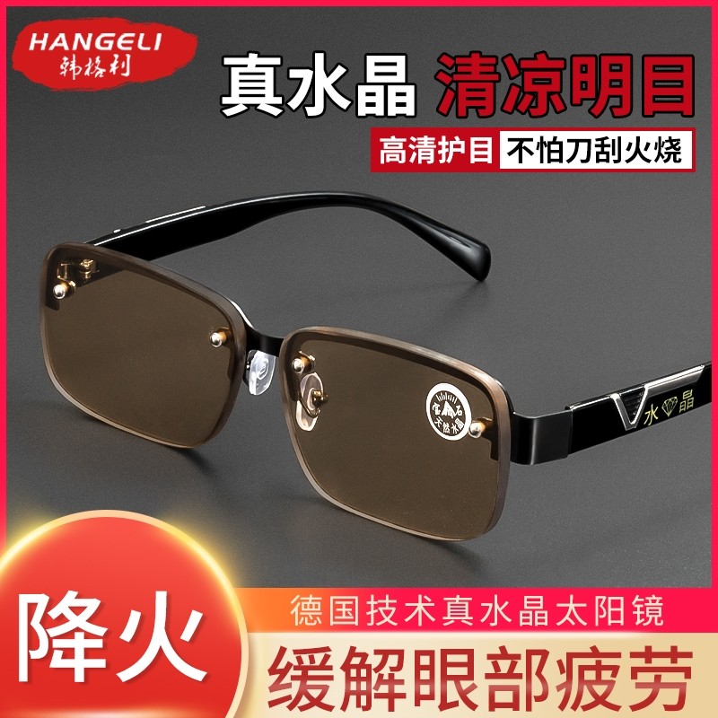 眼镜男天然水晶石头太阳镜正品大框遮光眼睛司机开车驾驶墨镜护目