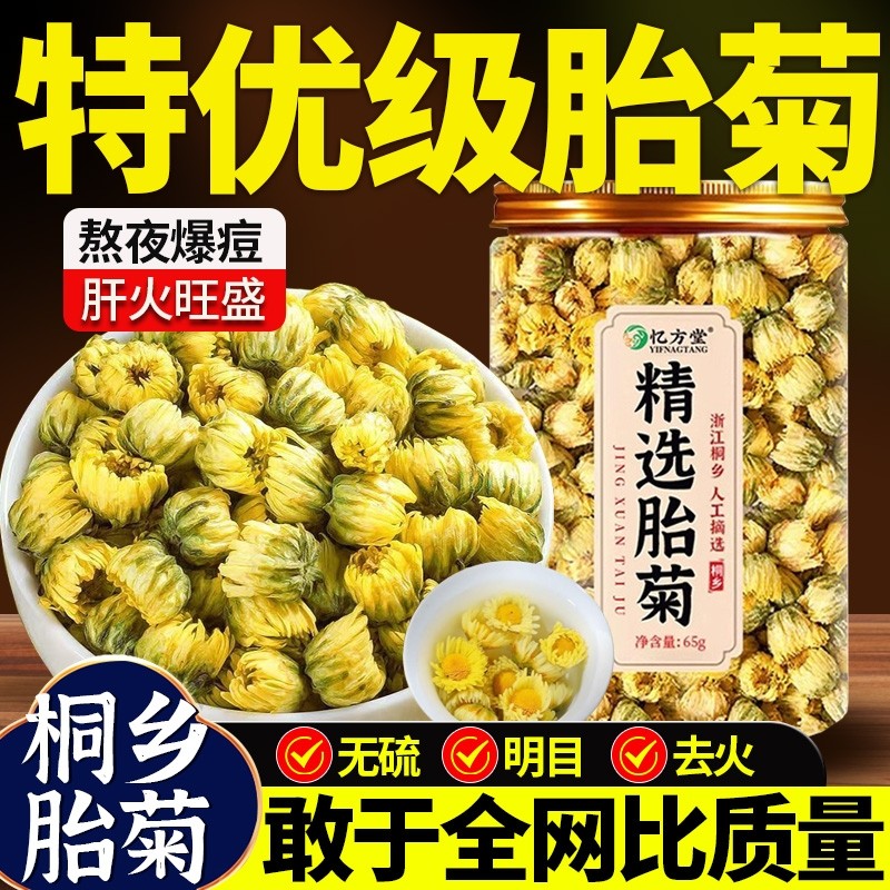 菊花茶特级正品桐乡胎菊菊花杭白菊泡茶专用清热去火泡水养生花茶