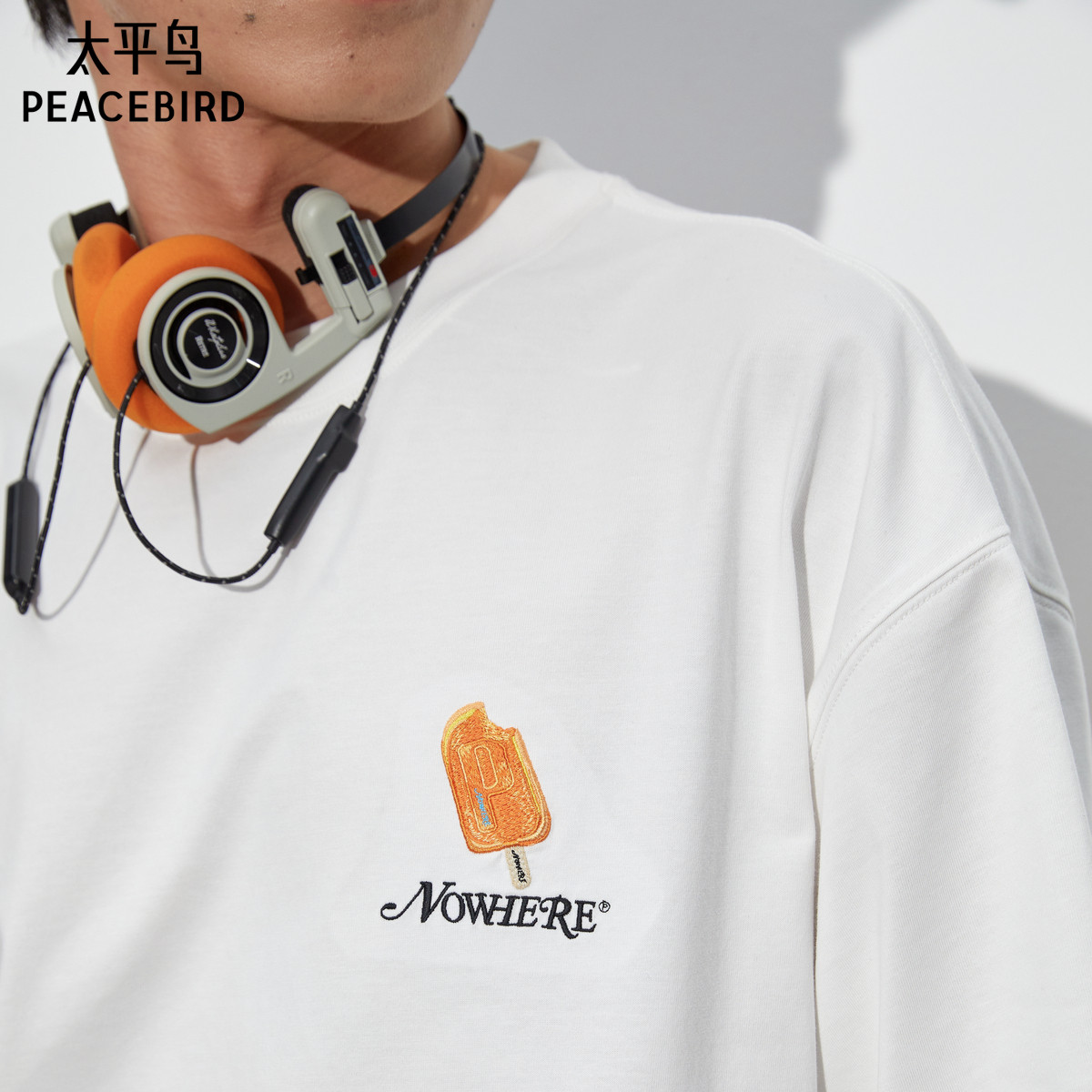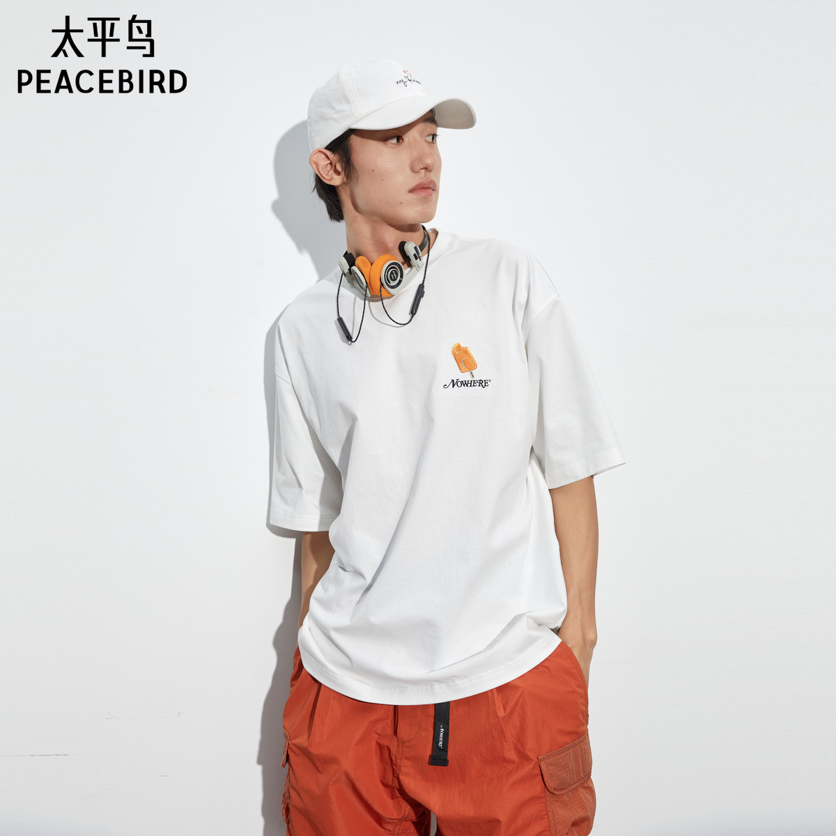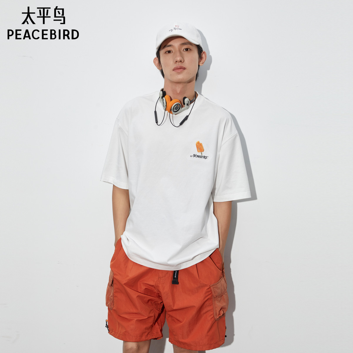【速干凉感】太平鸟男装 潮流背后印花短袖t恤男胸口刺绣体恤男