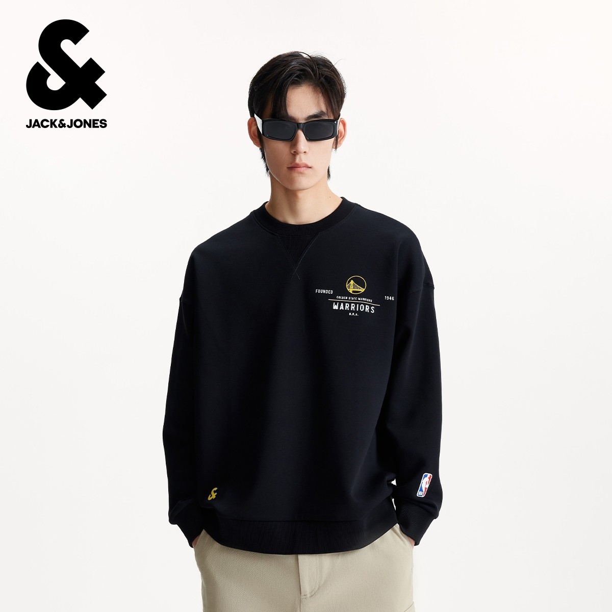杰克琼斯NBA联名男装卫衣2025新胶印刺绣圆领落肩袖宽松卫衣秋冬