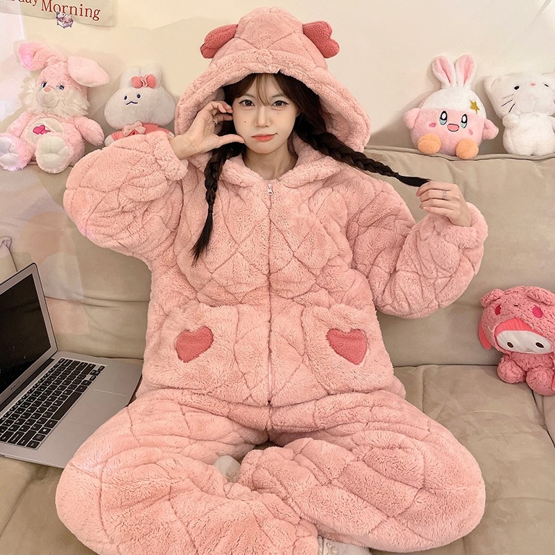 珊瑚绒睡衣女秋冬季2025年新款三层夹棉加厚保暖法兰绒大码家居服