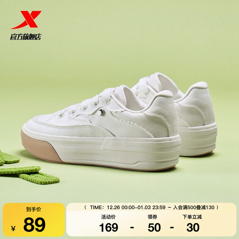 特步雪糕鞋|女鞋帆布鞋2025冬季新款板鞋休闲鞋运动鞋软底增高鞋