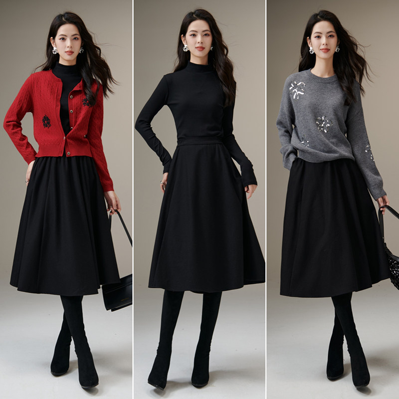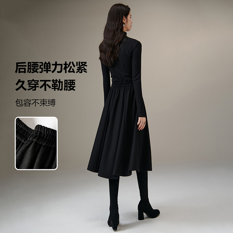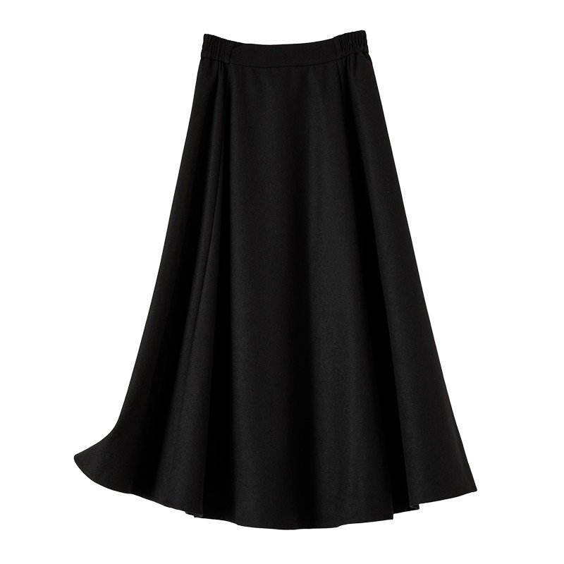 晚白2025秋冬新款绵羊毛纯色裙子高腰气质百搭伞裙a字半裙半身裙