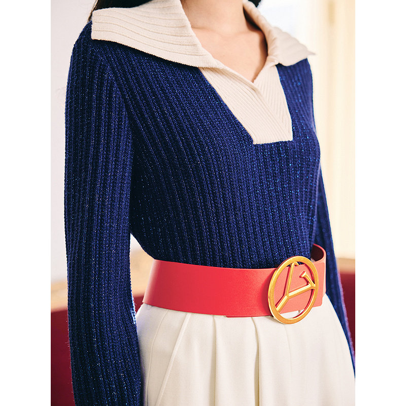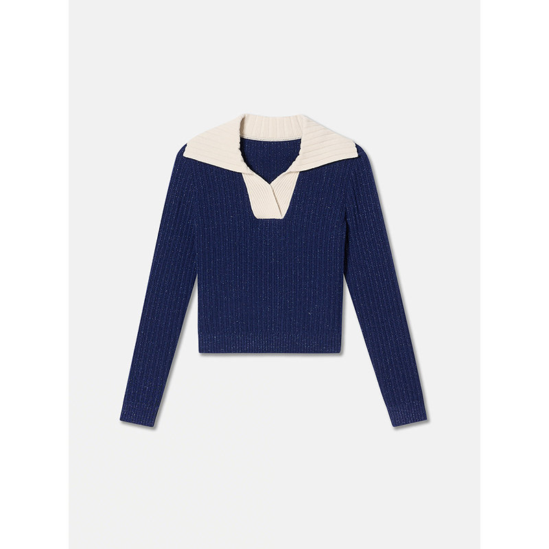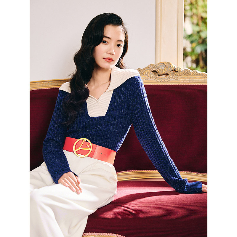 【1996系列】YINER音儿2026春季新款撞色翻领羊毛羊绒混纺针织衫