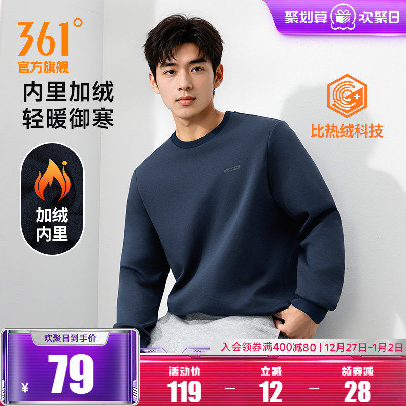 361运动卫衣男2025秋冬圆领男士加绒套头衫男装长袖男生运动服