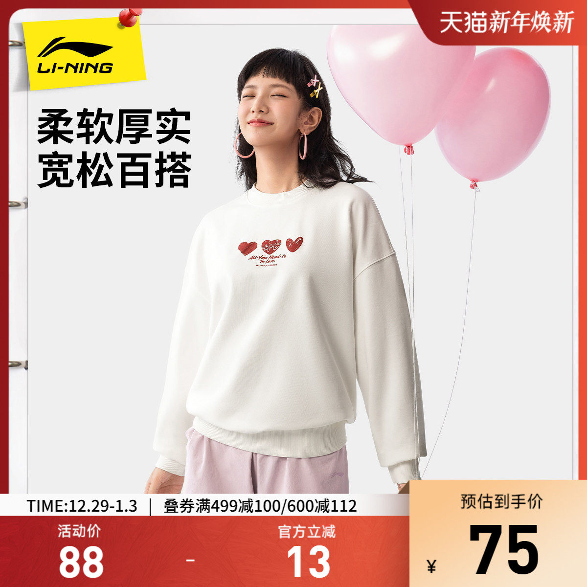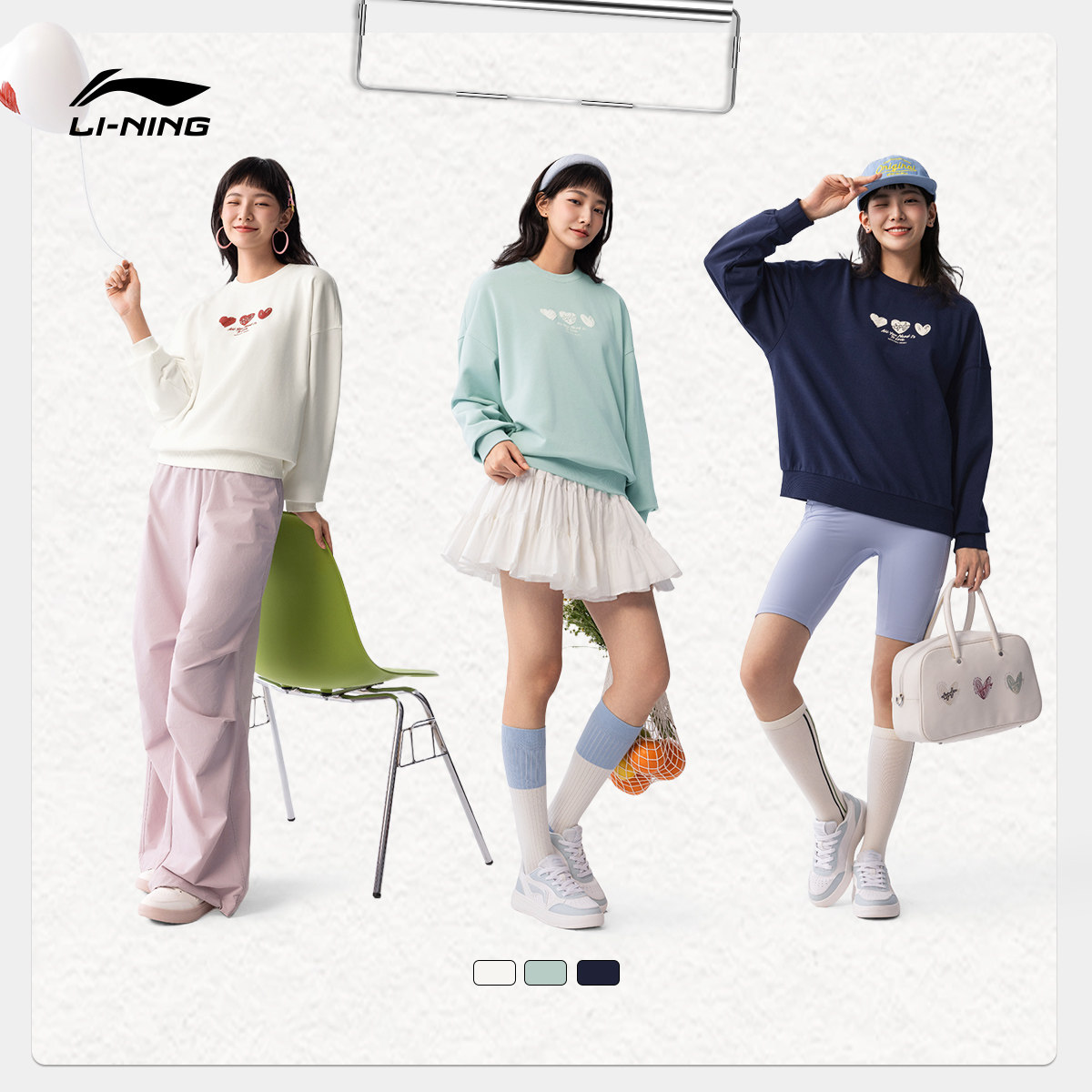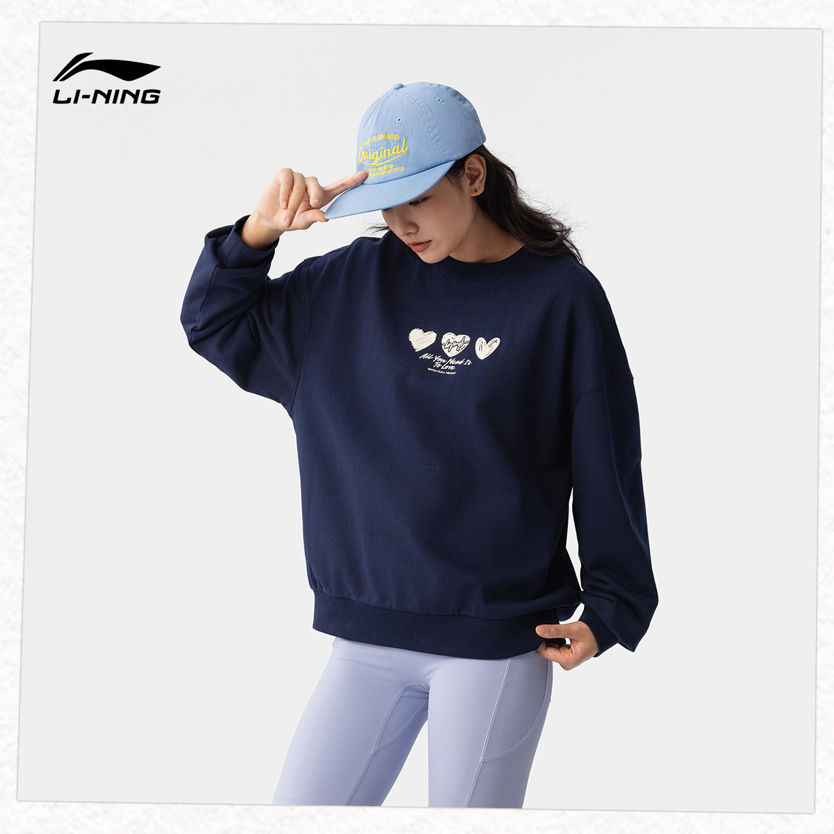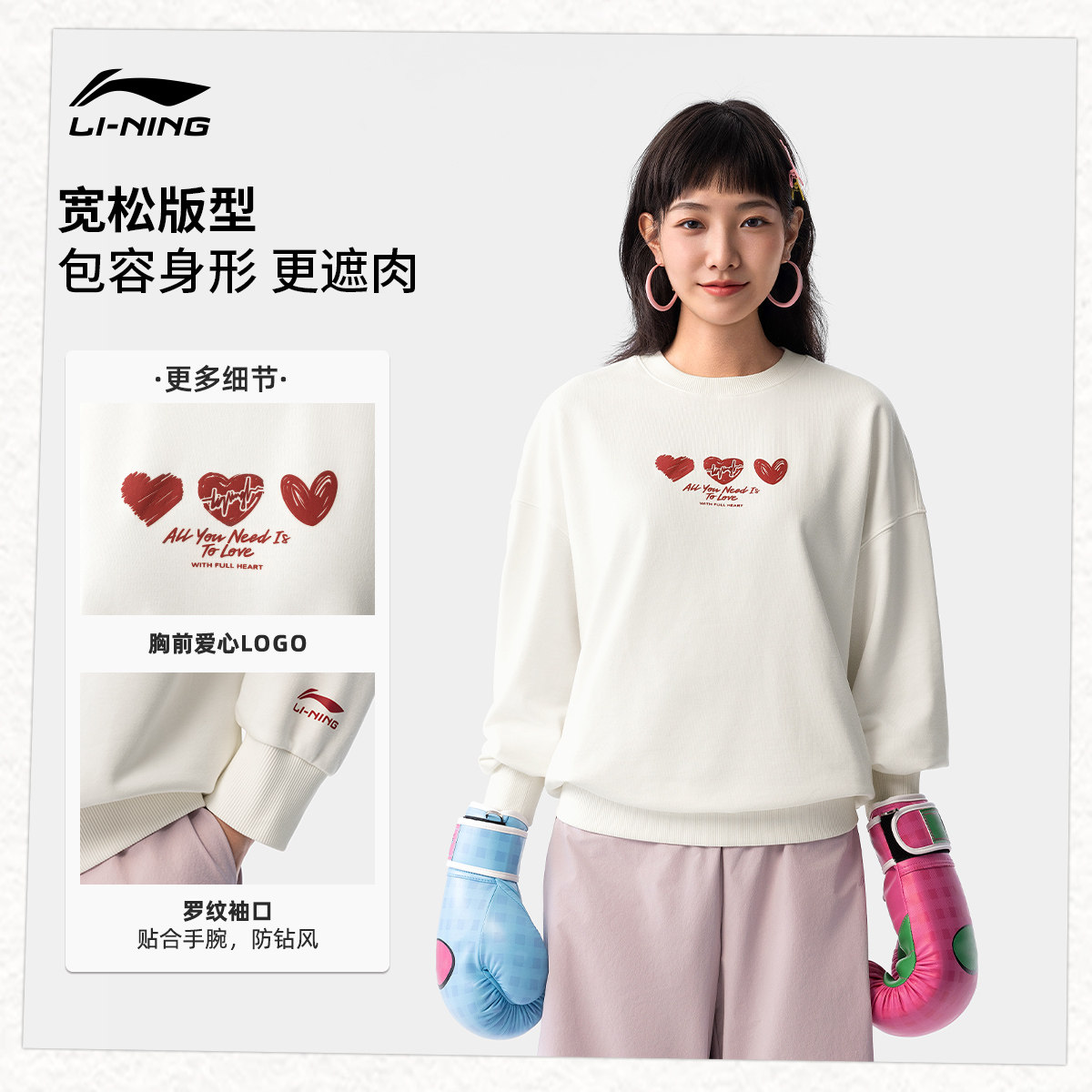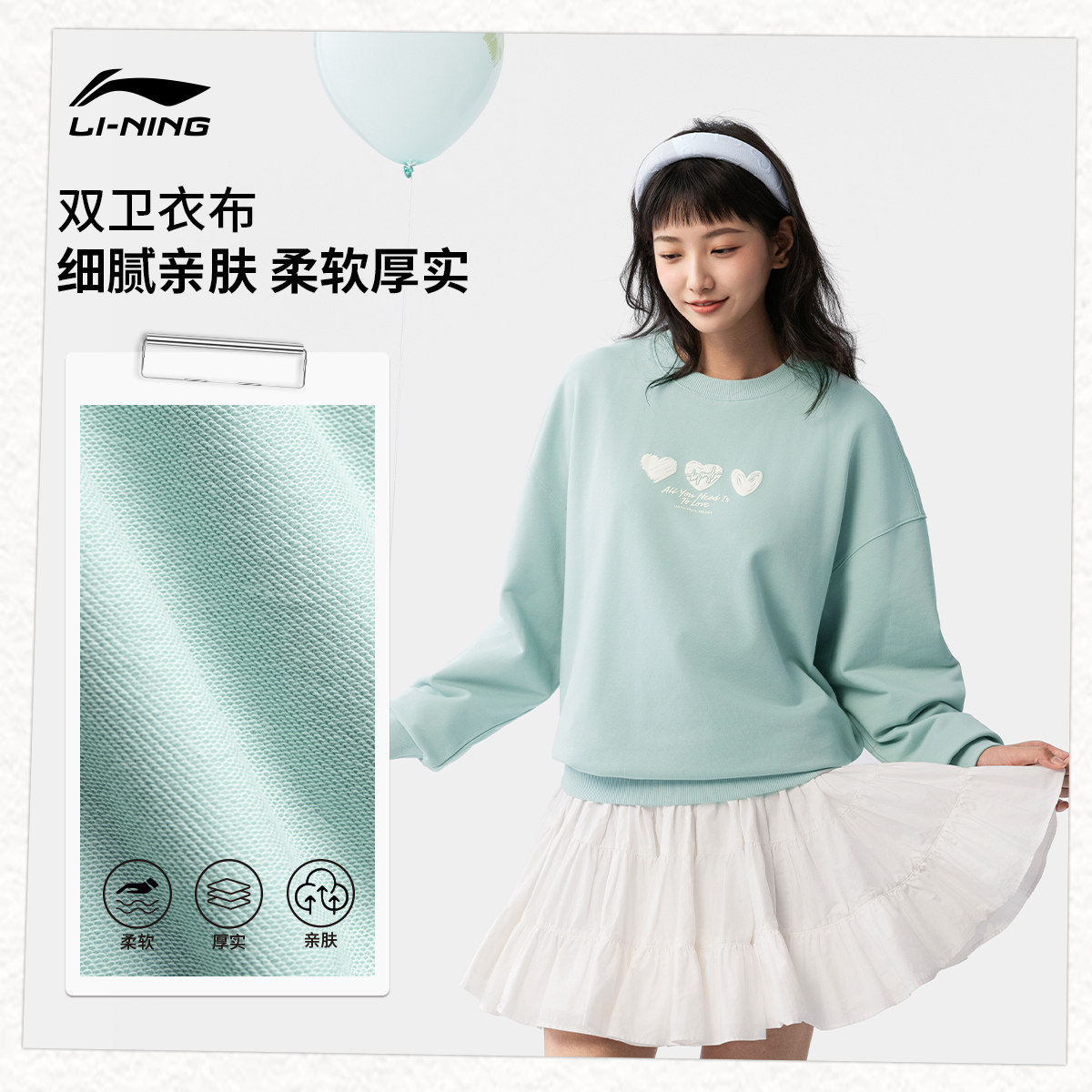 李宁爱心卫衣女春秋新款女装圆领上衣百搭基础款长袖运动服套头衫