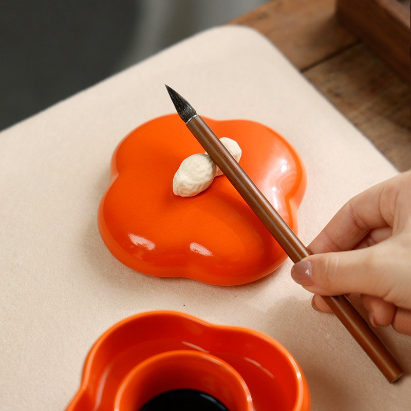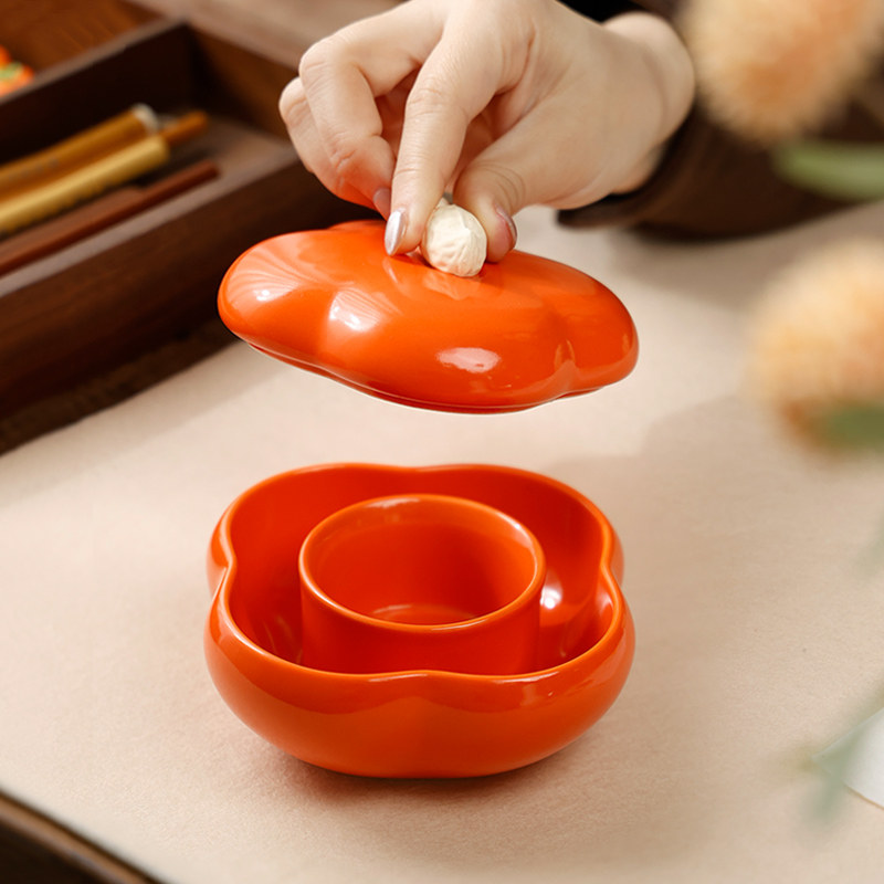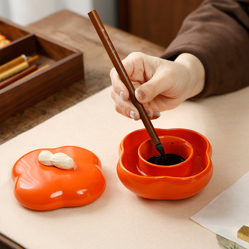 好柿花生 火锅砚台不干墨书法专用火锅砚台带盖书法墨盒墨池带盖碟文房四宝批发墨砚墨汁砚台多功能笔搁小