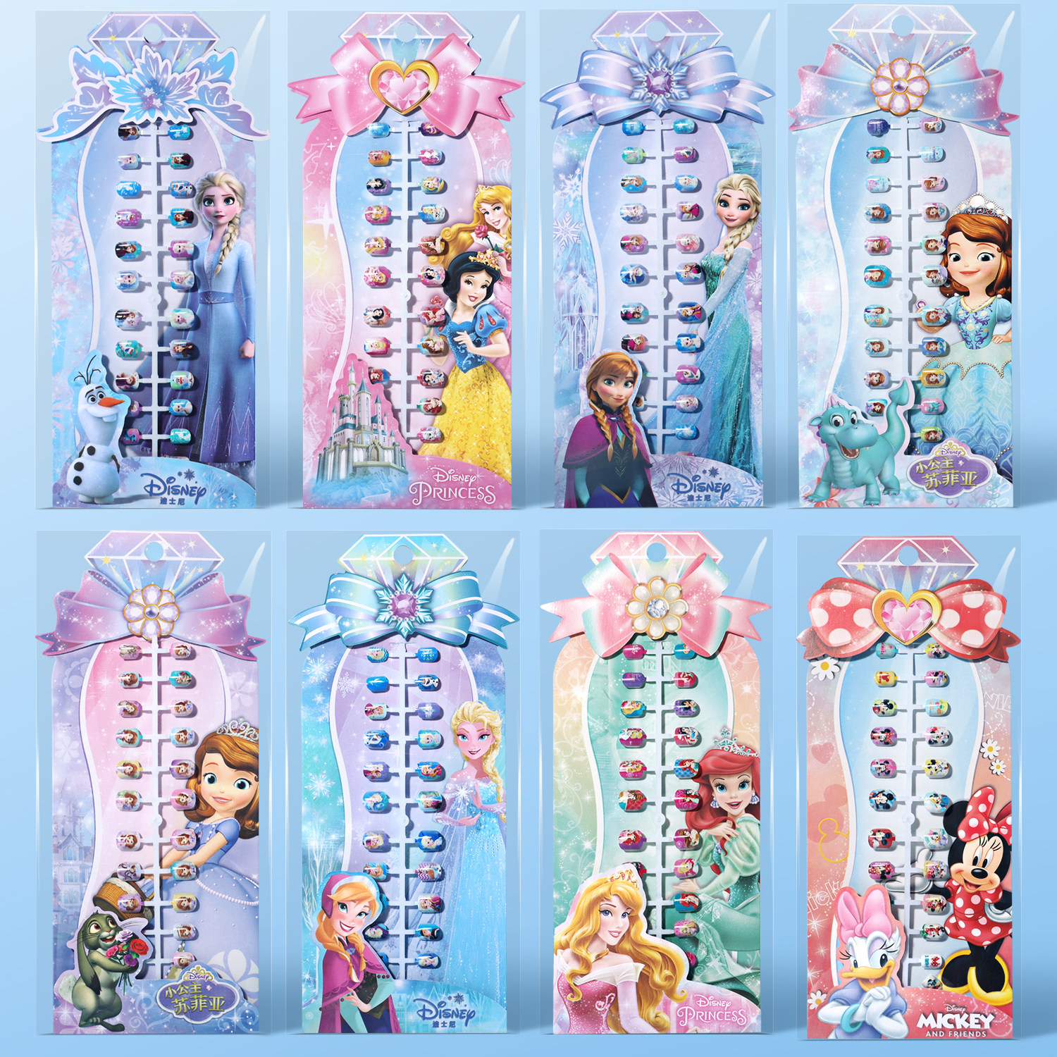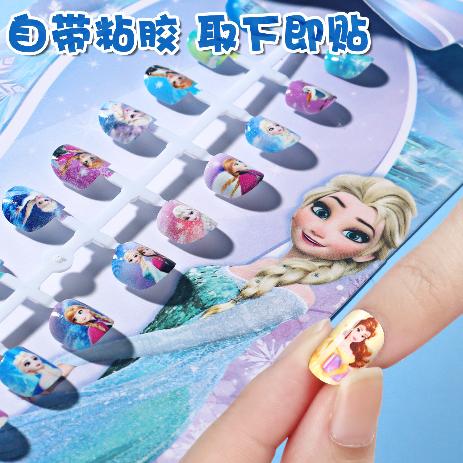 迪士尼儿童指甲贴女孩过年新款自粘安全无味贴画小孩女童穿戴式美甲套装全套爱莎公主宝宝自贴指甲贴胶苏菲亚
